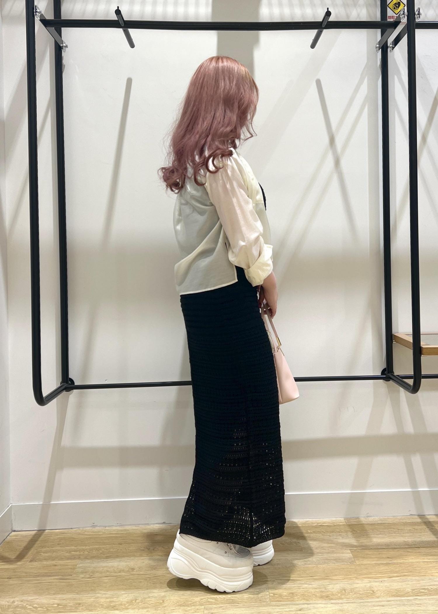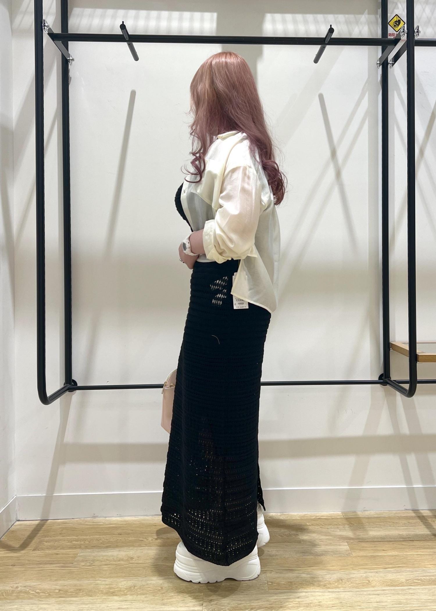 アウトレットROPÉ PICNICセットアップ対応/透かし編みテープヤーンIラインニットスカートブラック系 / 40¥2,718レビューニットなので伸縮性が良いです!