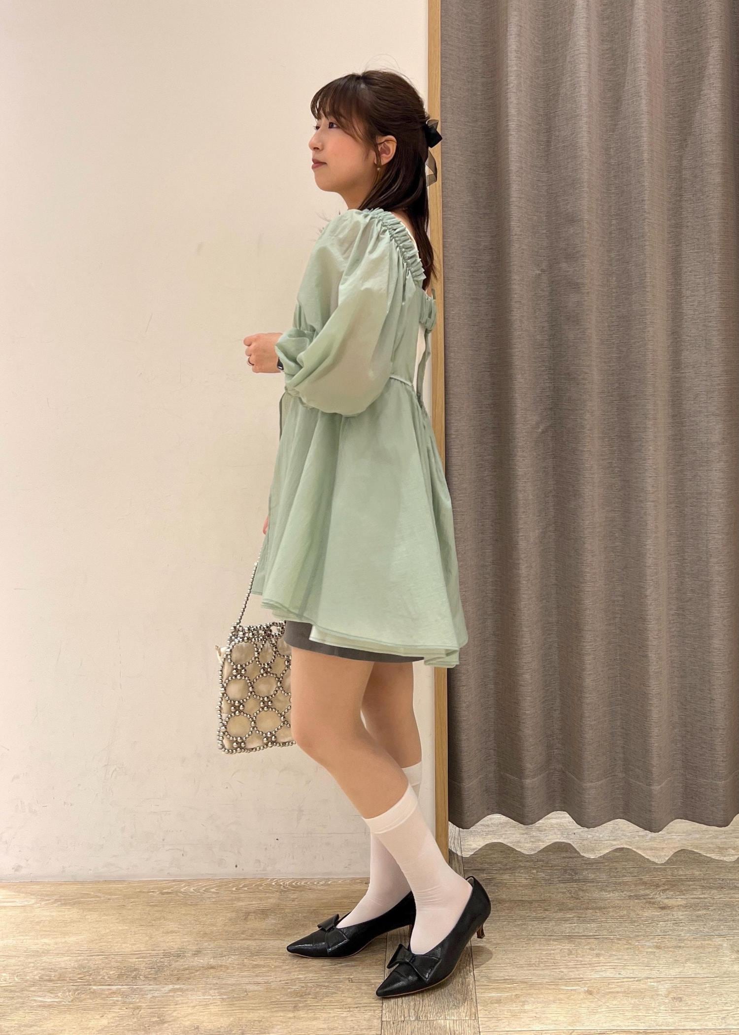 アウトレットVISパフスリーブナイロンチュニックブラウスグリーン系 / F¥3,164レビュー落ち感のある素材で華奢見え!