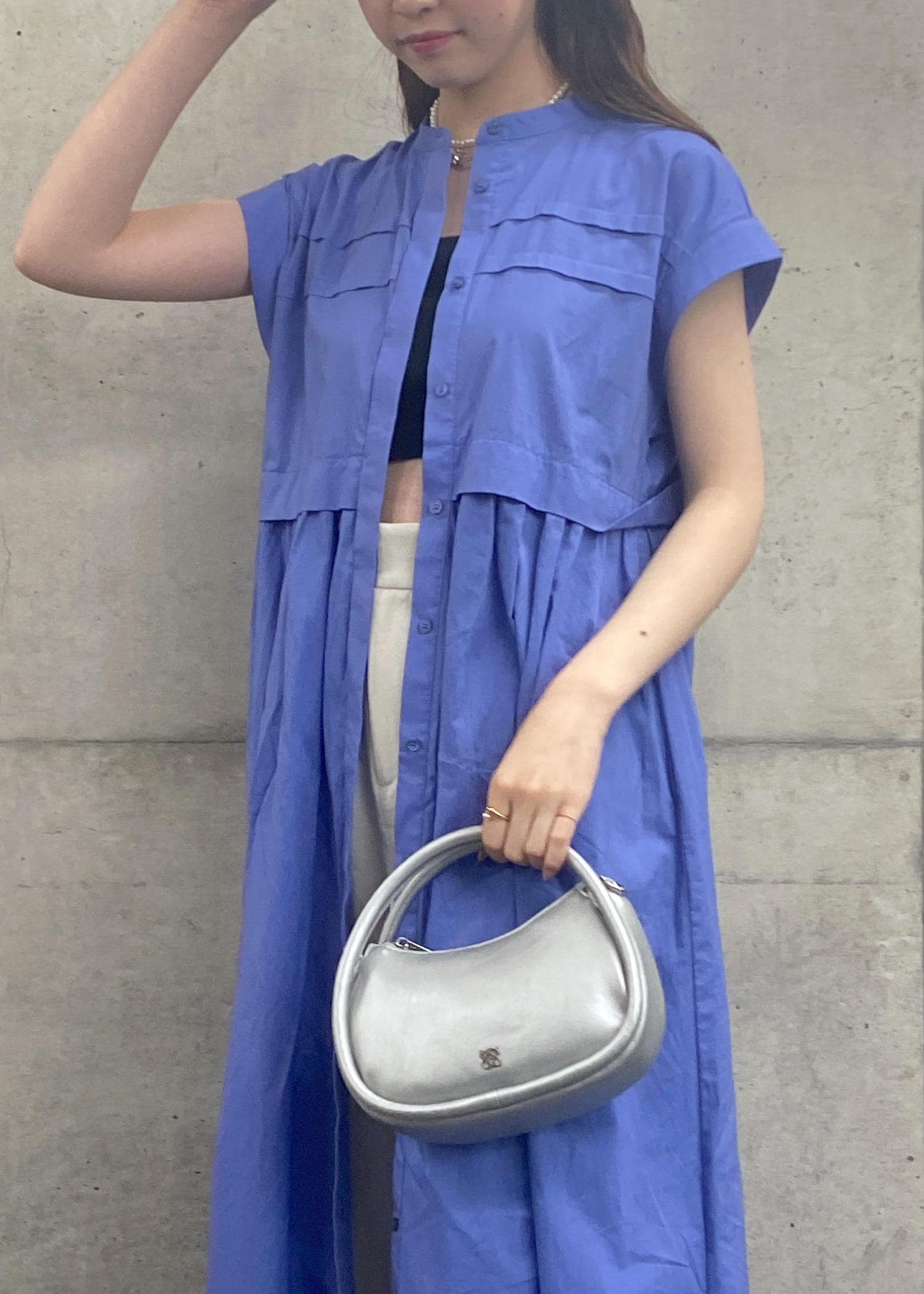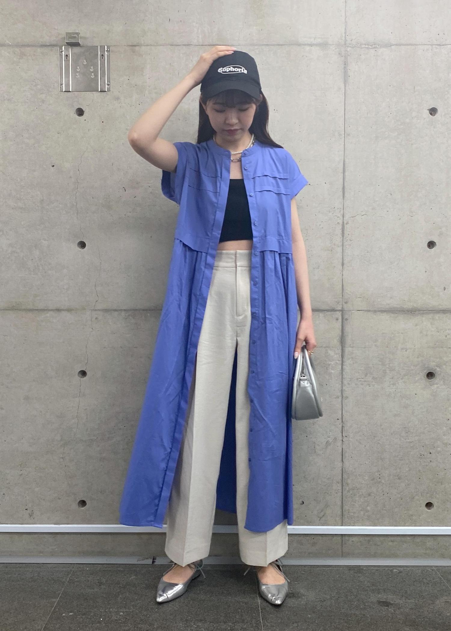 シャツワンピースのボタンを全部開けて羽織りとして使った大人っぽいコーディネートです。