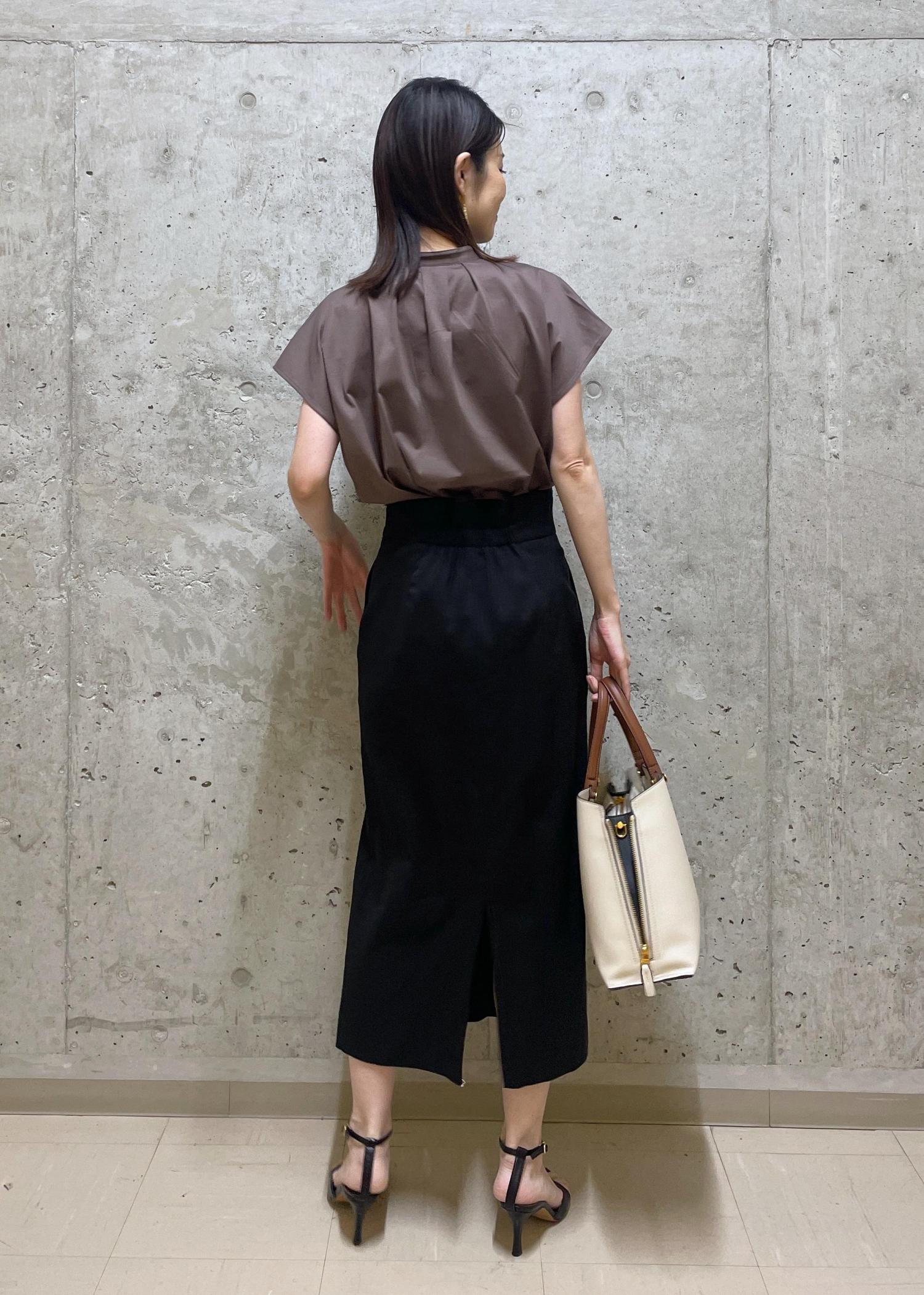 タイトシルエットですが、後ろスリットが入っているので足捌きがしやすいです。 -