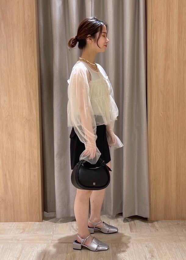 アウトレットVIS【前後2WAY】袖シャーリングチュールリボンブラウスホワイト / F¥2,196レビュー今年トレンドのチュールボレロ。