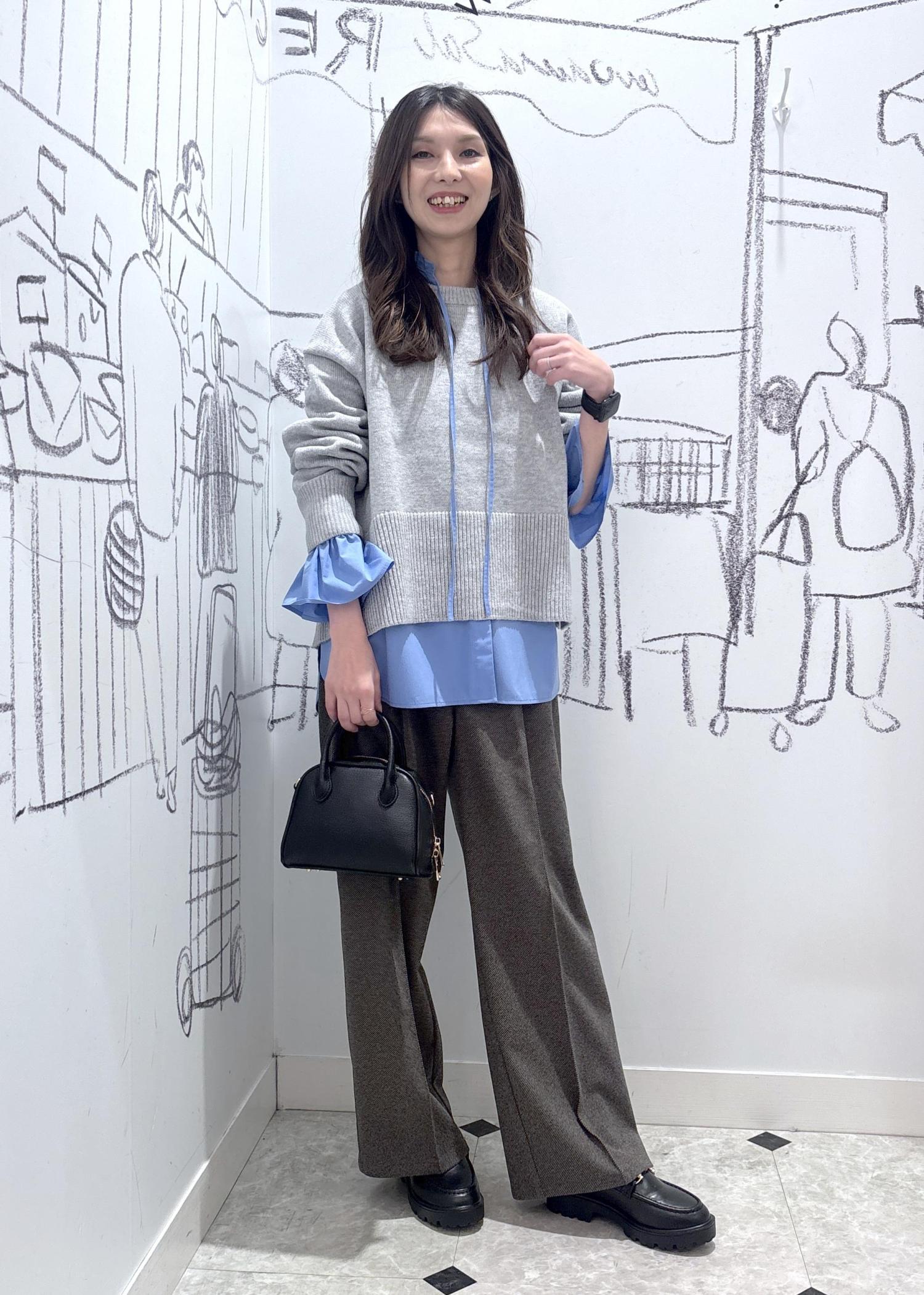 スカートを合わせると少し甘めな印象になるので、セットアップでパンツとの着用の時とはまた印象が変わるのでおすすめです!