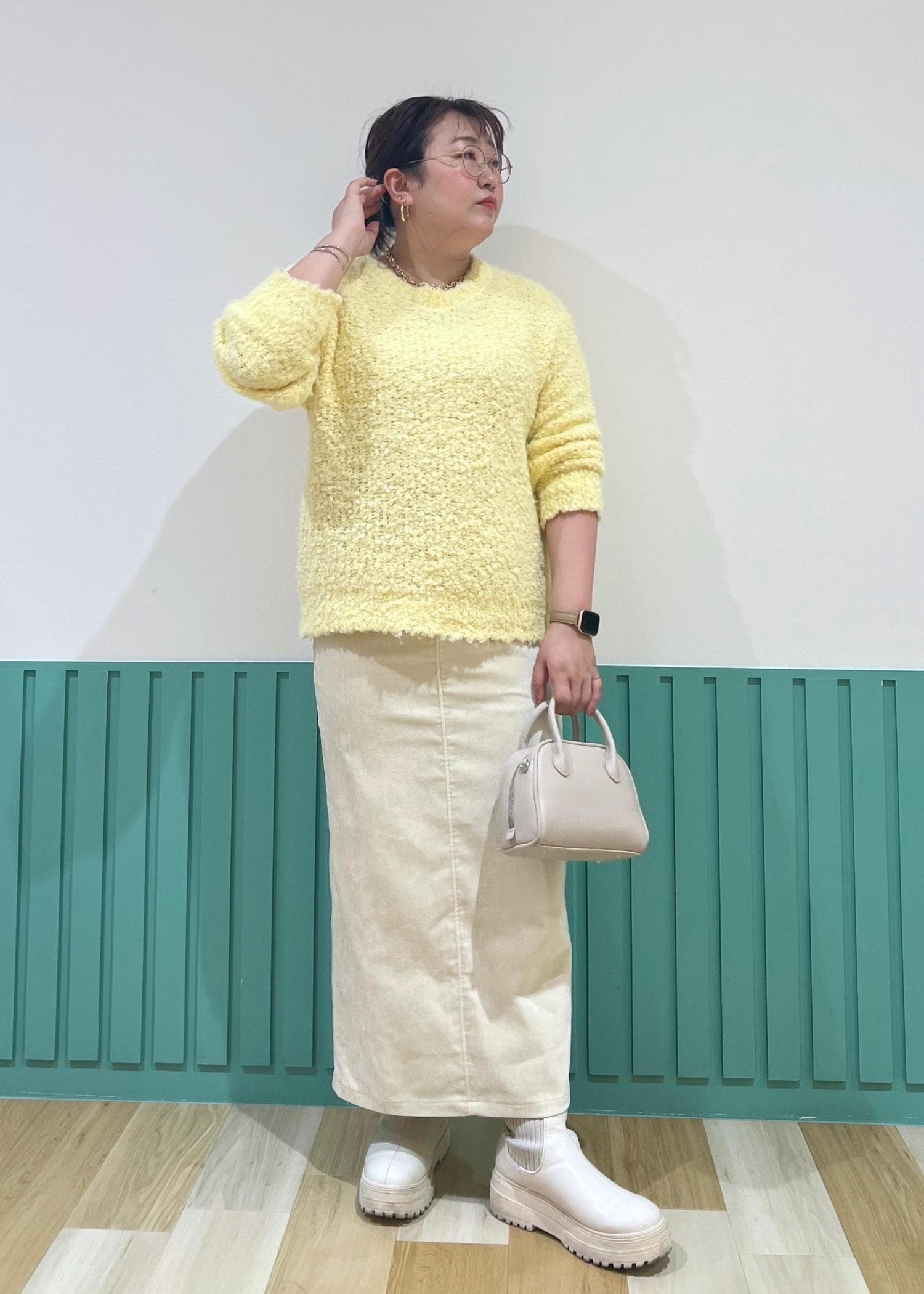 リラクシーな雰囲気のボトムスですが、艶感もあるのでお仕事でもお召しいただけます。