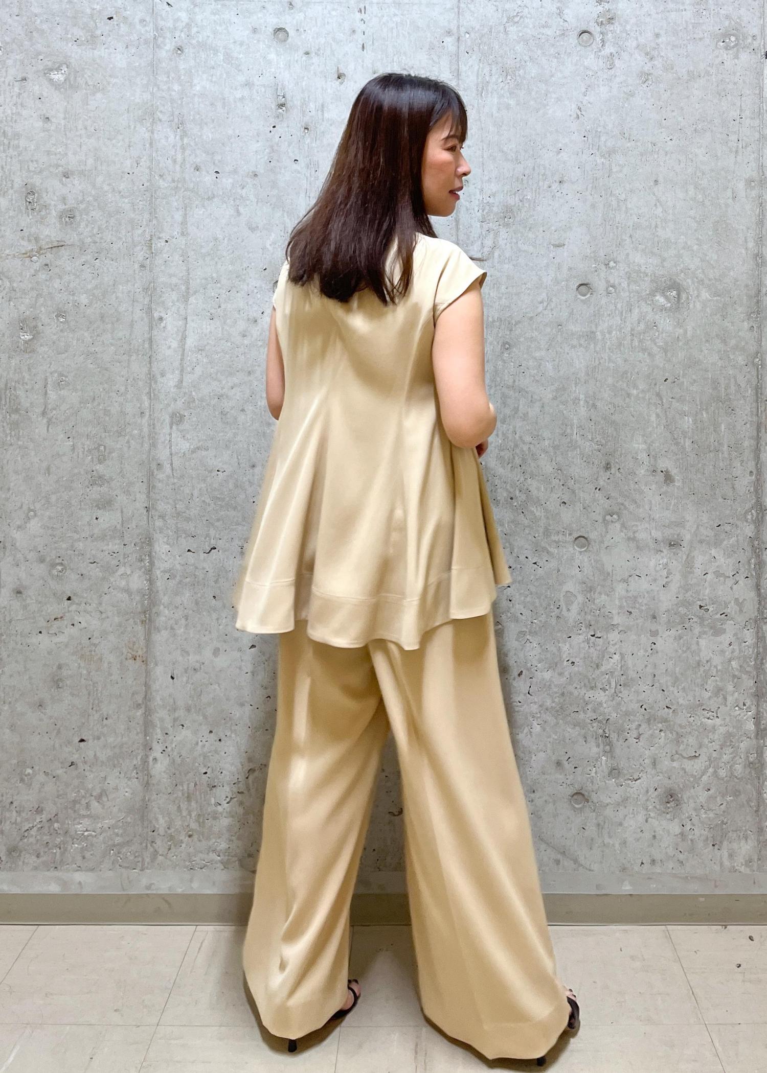 アウトレットROPÉトリアセバックサテンワイドパンツ/セットアップ対応【メディア掲載】ベージュ / 36¥19,250レビュー153cmで36サイズを着用しました。