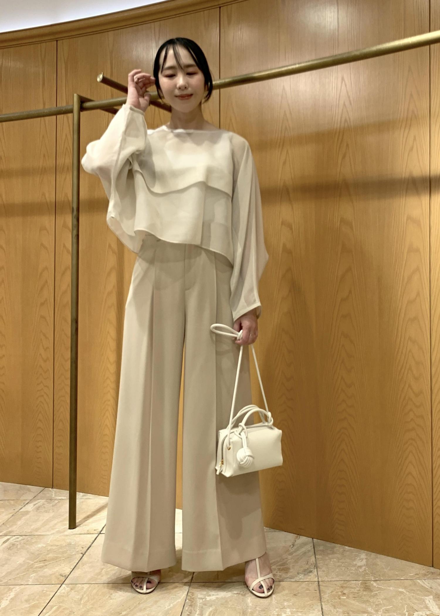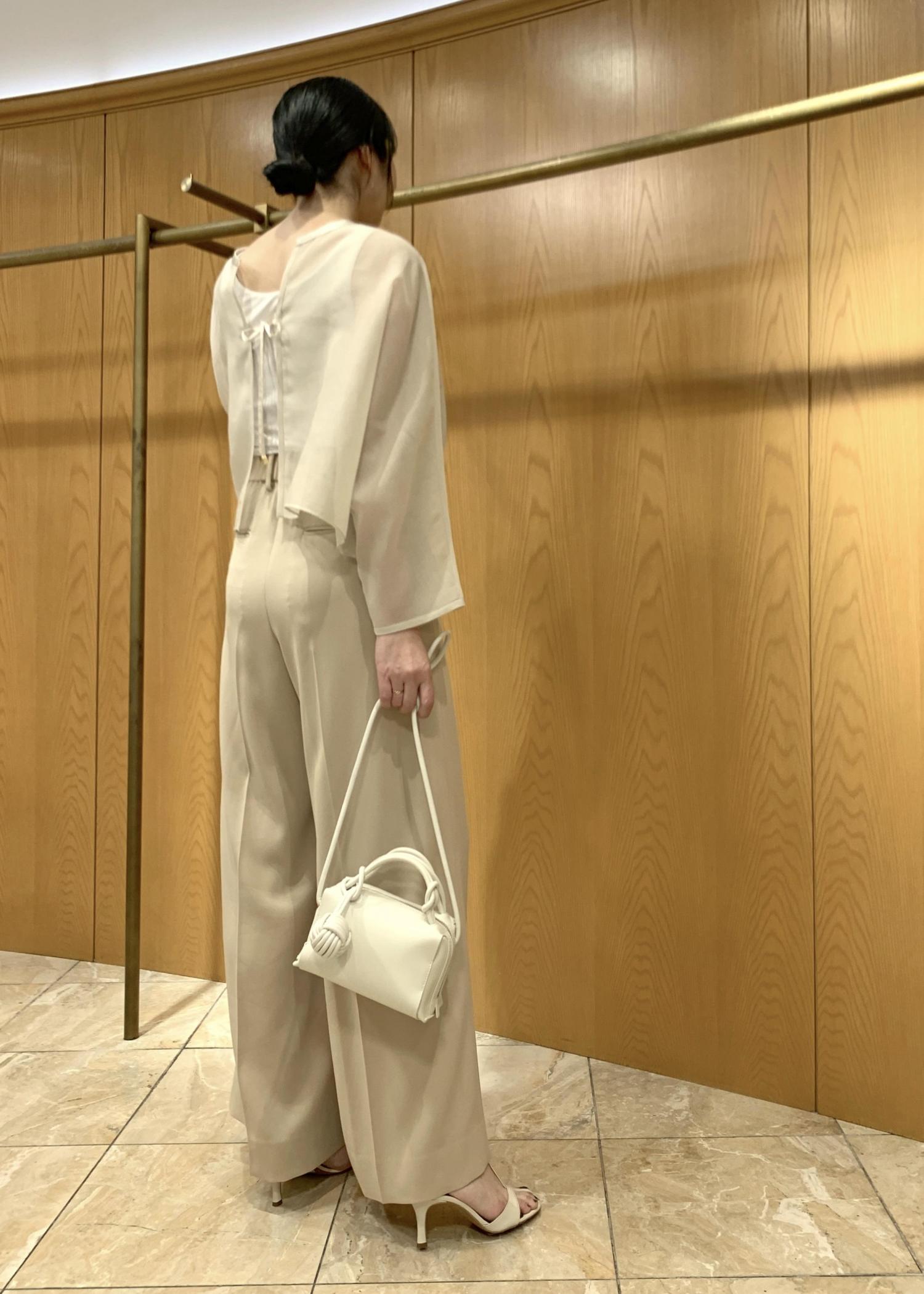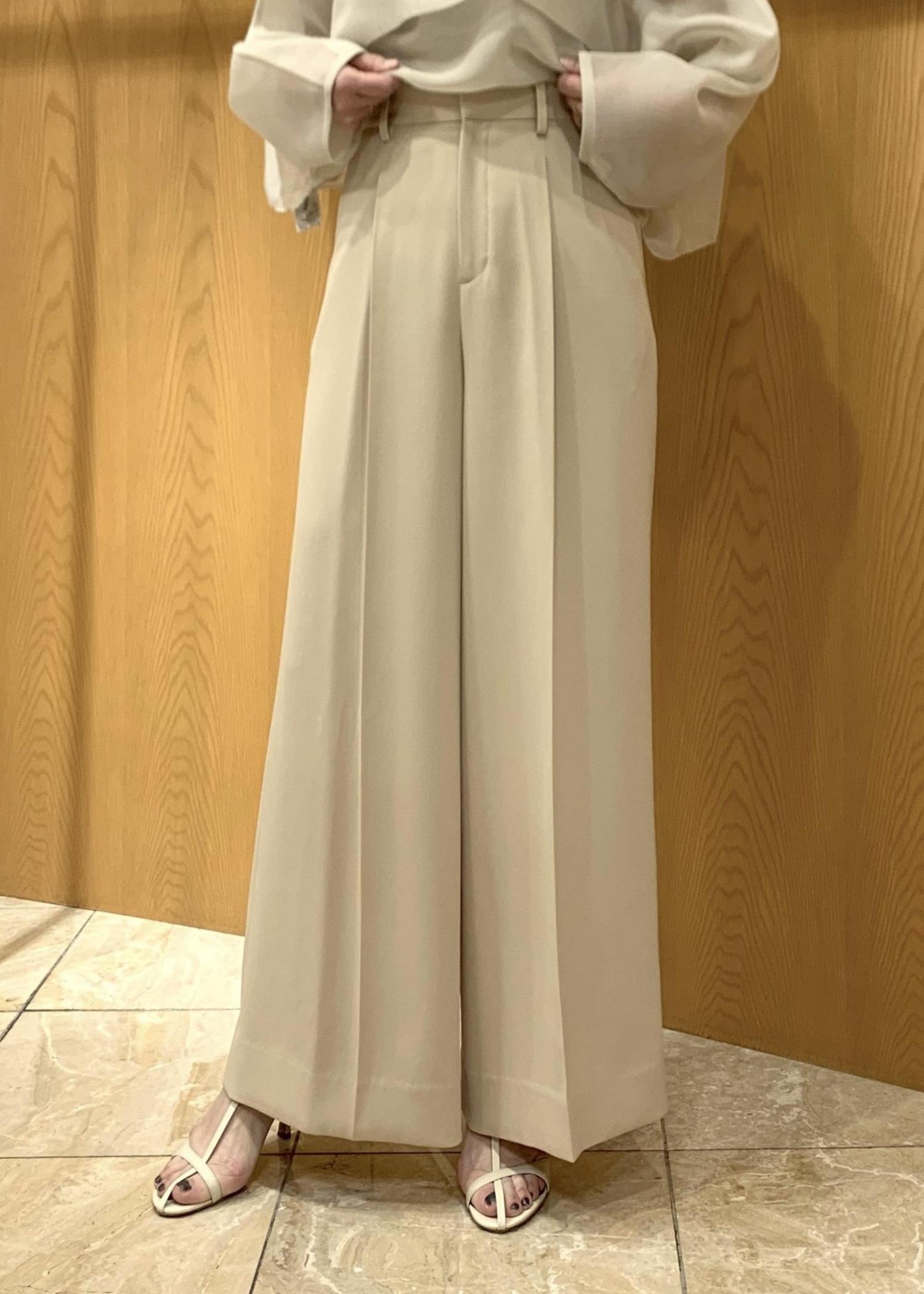 アウトレットROPÉトリアセバックサテンワイドパンツ/セットアップ対応【メディア掲載】ベージュ / 38¥19,250レビュー162㎝ 38サイズ着用