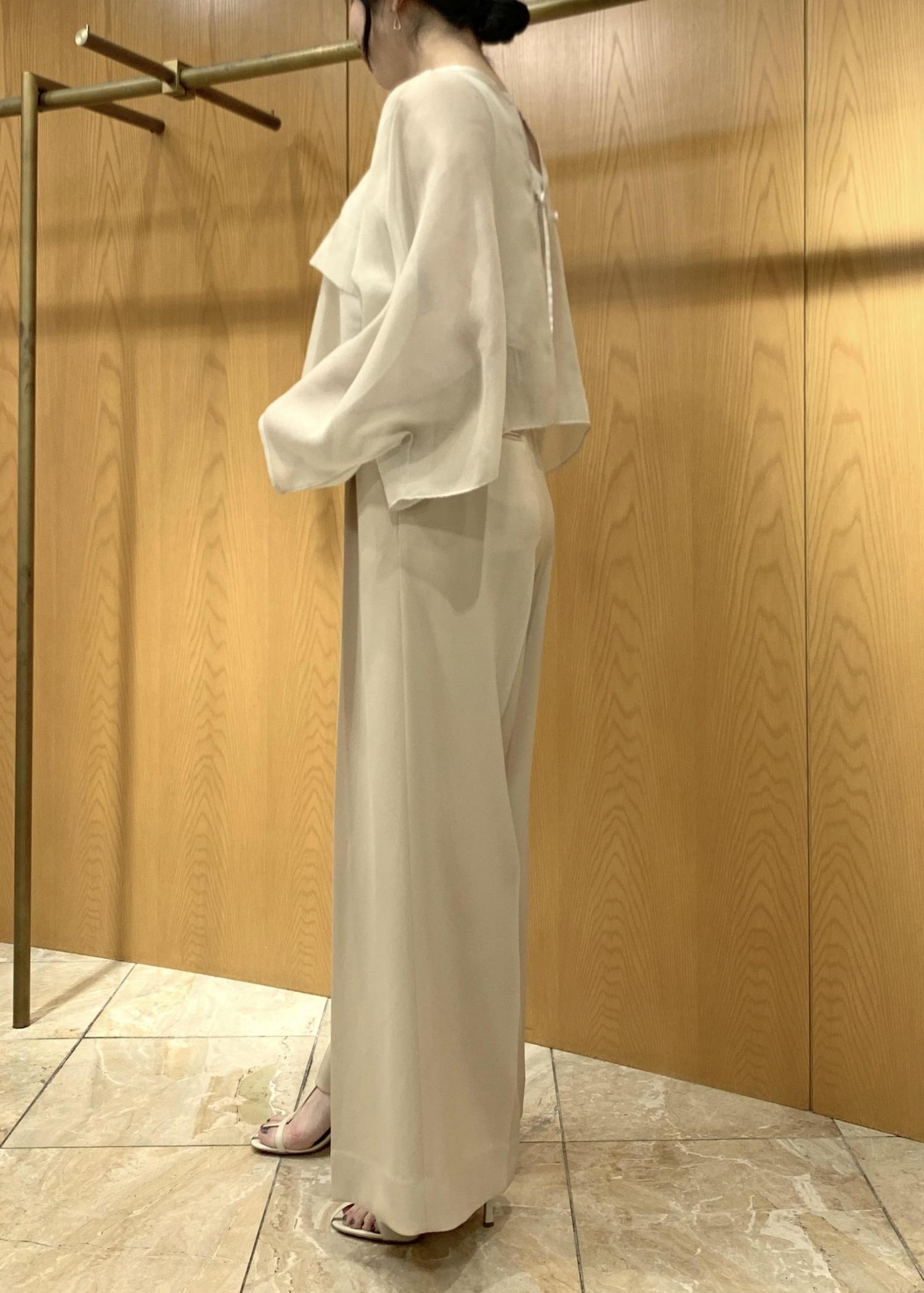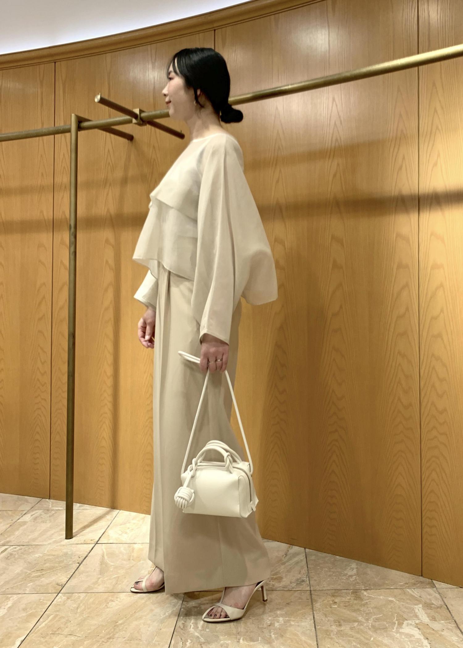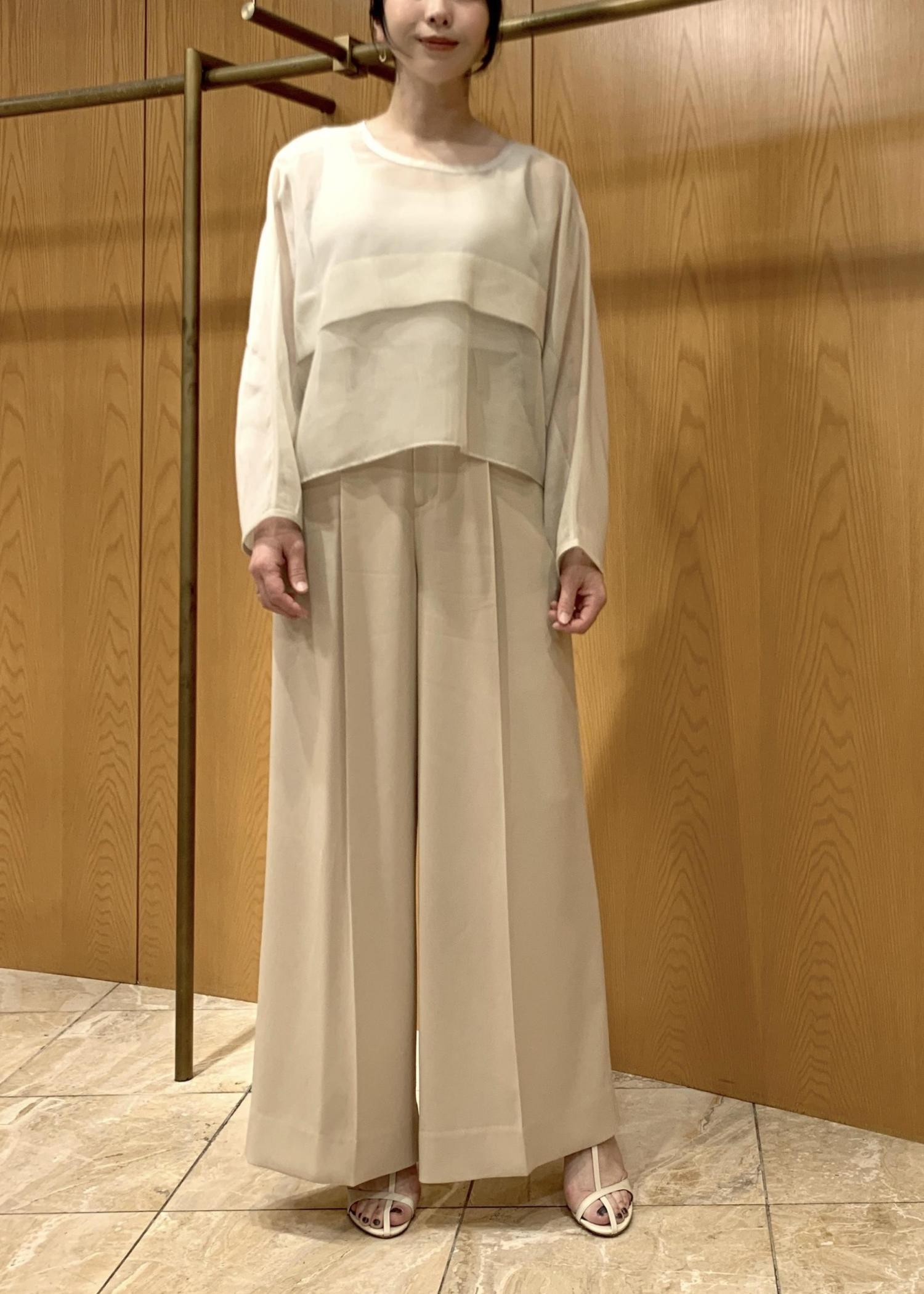 アウトレットROPÉトリアセバックサテンワイドパンツ/セットアップ対応【メディア掲載】ベージュ / 38¥19,250レビュー162㎝ 38サイズ着用