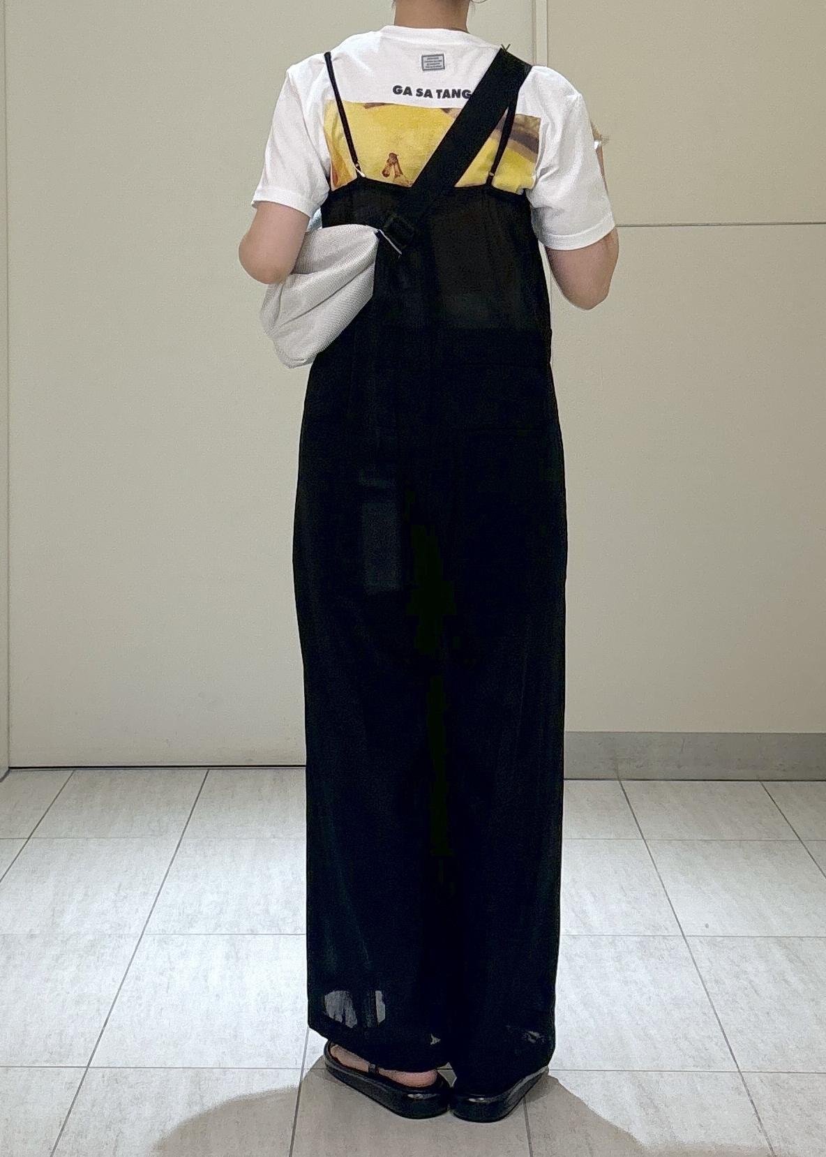アウトレットADAM ET ROPÉ FEMMEシアーキャミロンパースブラック / F¥11,880レビュー生地が柔らかく、涼しいので着心地が良いです。程よい透け感があるのでプリントT、グラフィックTなど合わせると◯