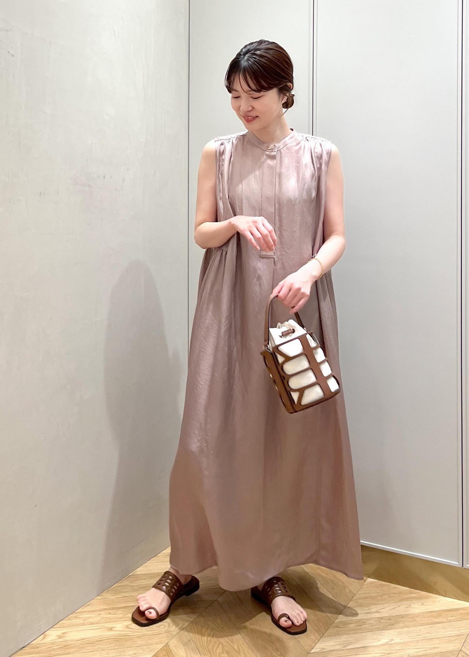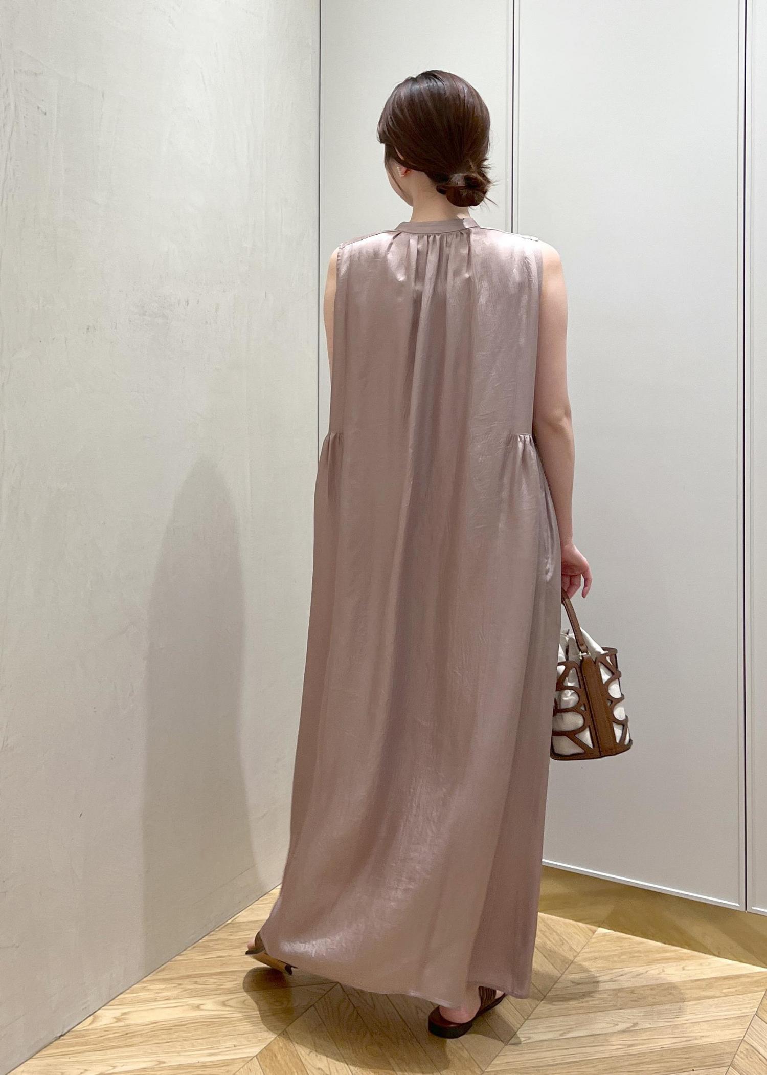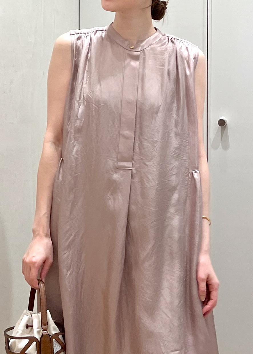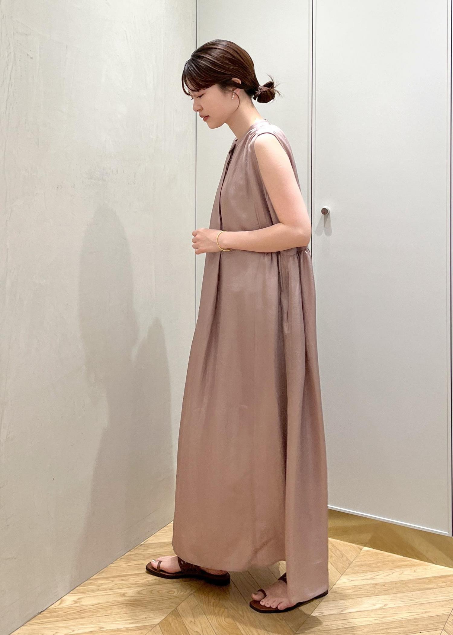 アウトレットROPÉアセテートビンテージサテンギャザーワンピースベージュ / F¥25,080レビューツヤ感と上品さもあり、肌離れする軽い着心地。
