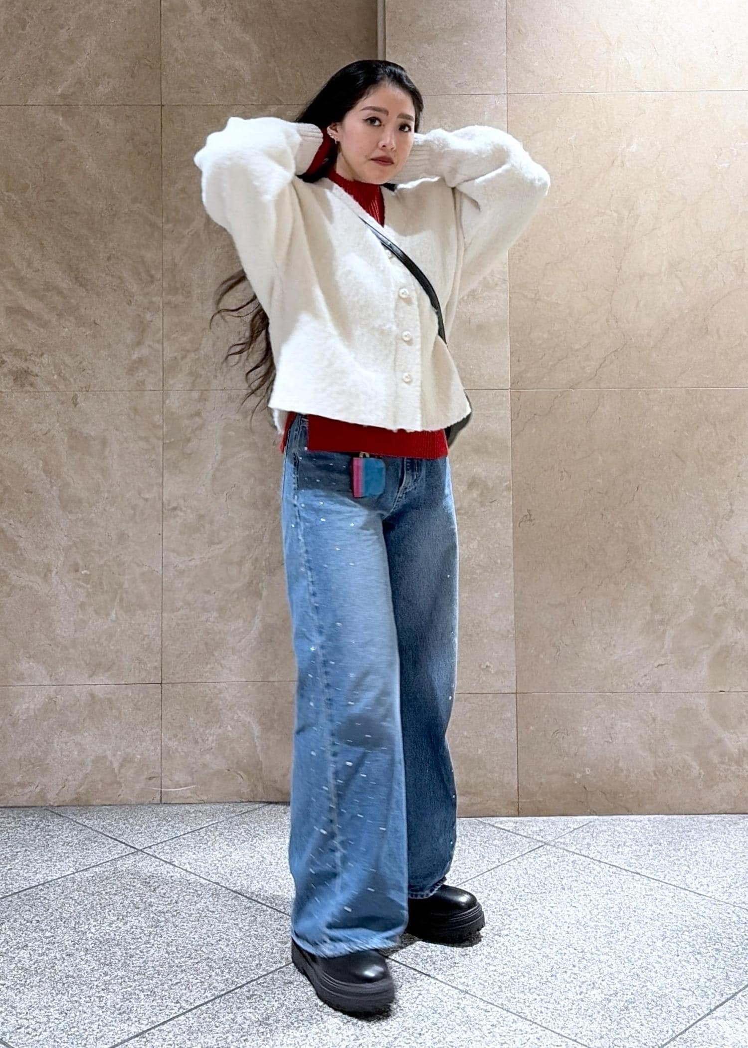デニムには赤いカラーを合わせれば間違いなく可愛くなる!と思って組んだスタイリング。