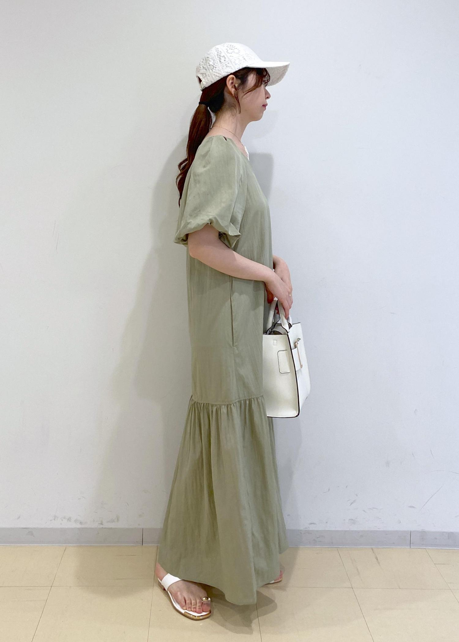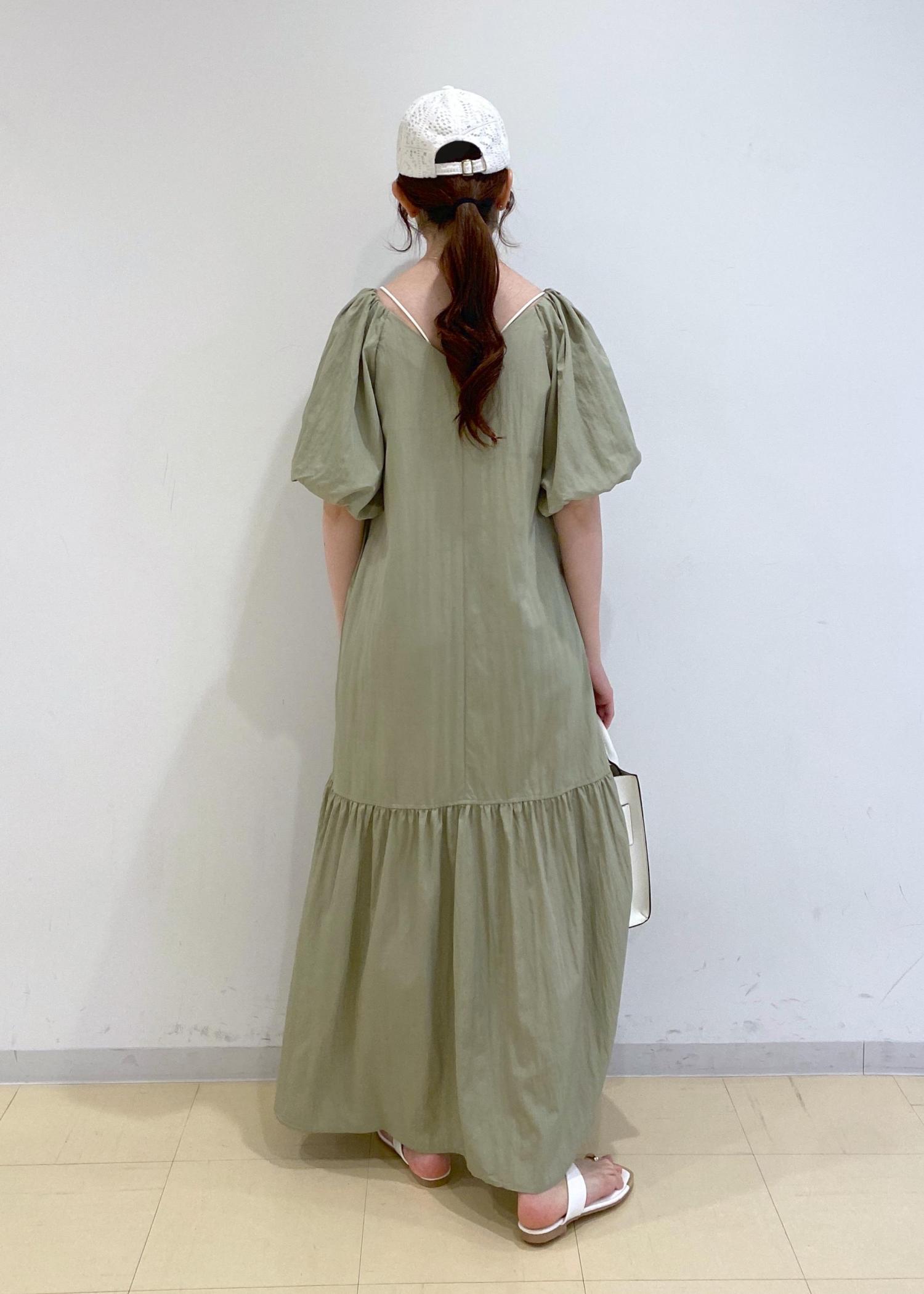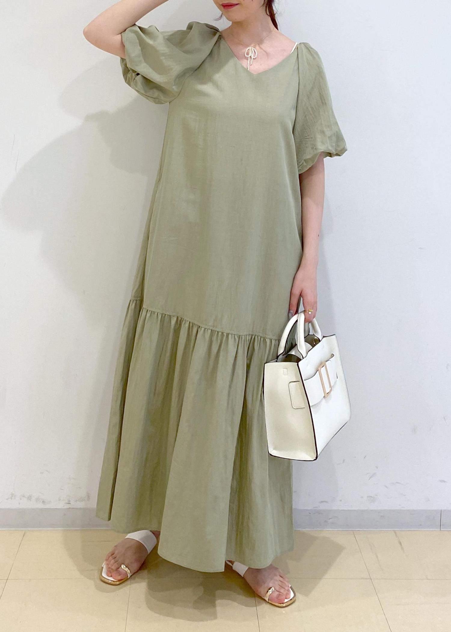 アウトレットVIS袖ボリューム裾ギャザーワンピースオリーブ / F¥3,076レビュー体のラインを拾わないゆったりとしたシルエットです。