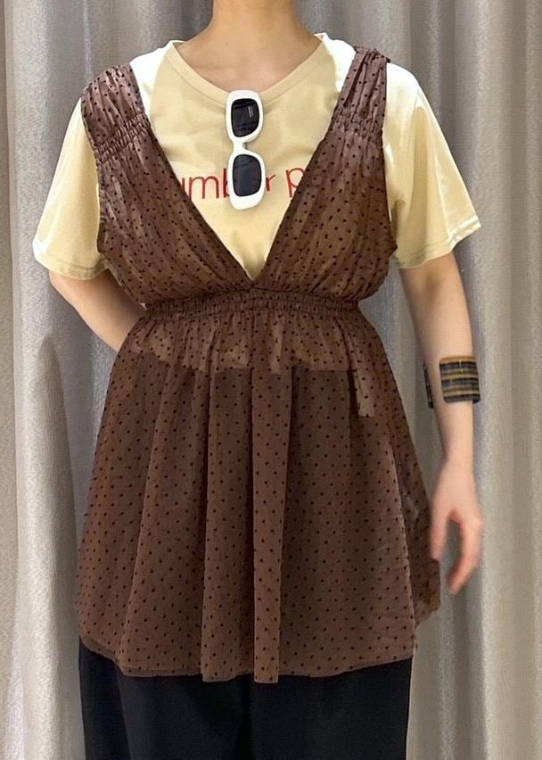 アウトレットVISフロッキードットチュールチュニックダークブラウン / F¥2,372レビュー程よい透け感が可愛いチュールトップス。