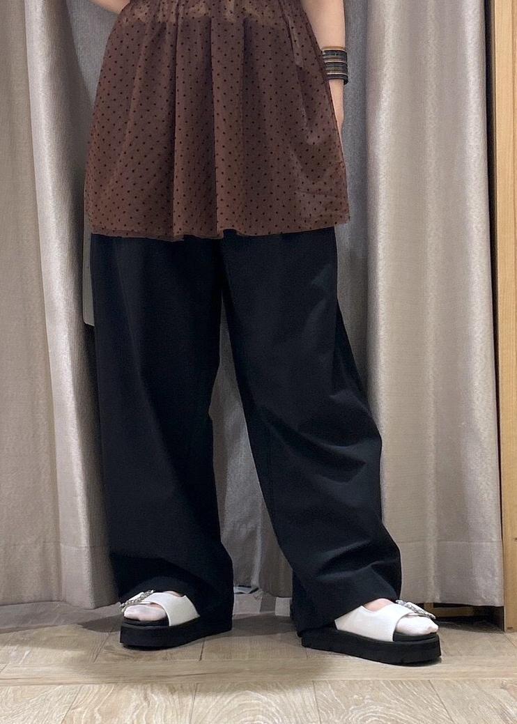 アウトレットVIS【洗える】タックギャザーパンツブラック / S¥2,965レビュー150cmでSサイズを着用して、ウエストを一回折るとくるぶしが隠れる丈でした。