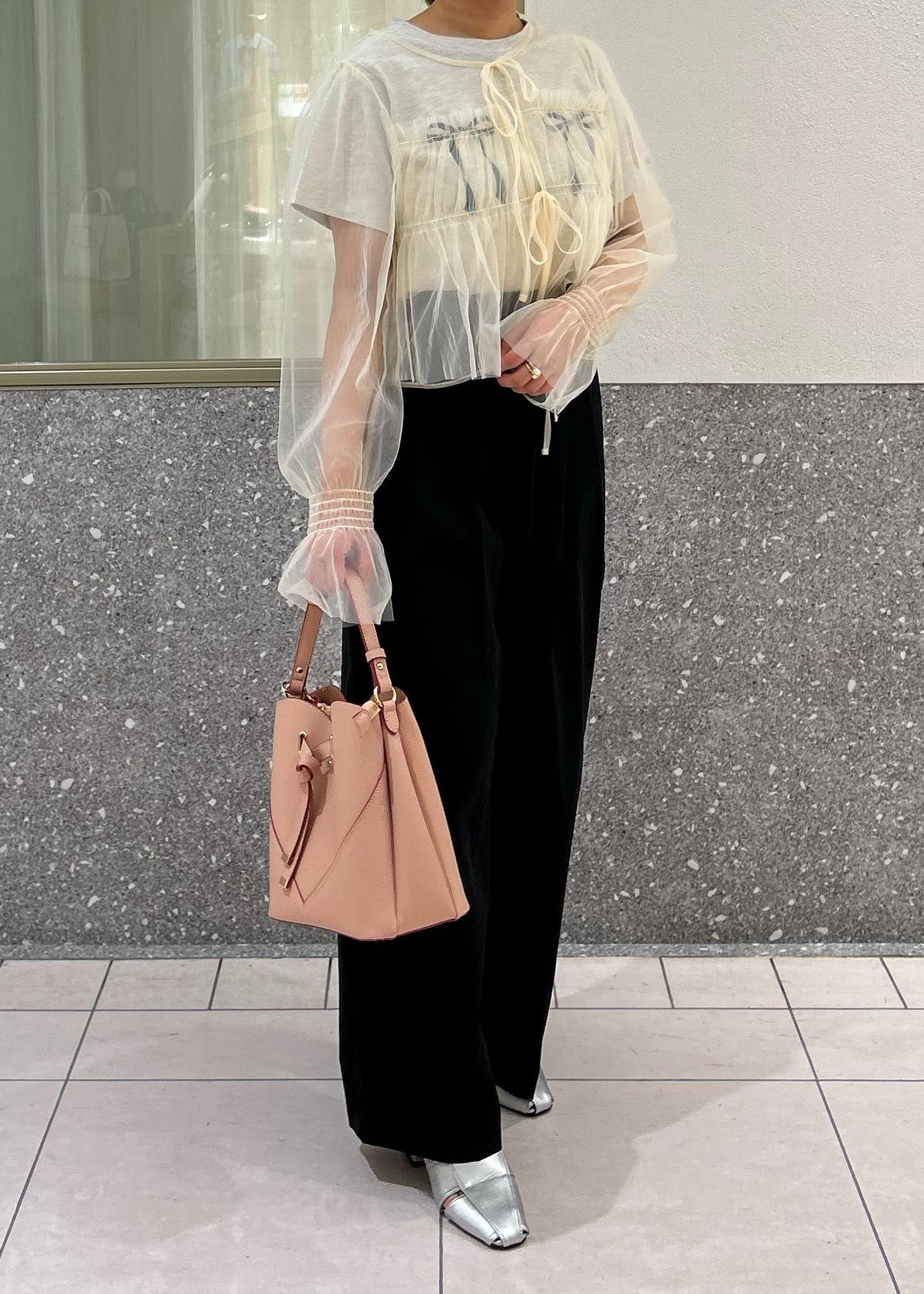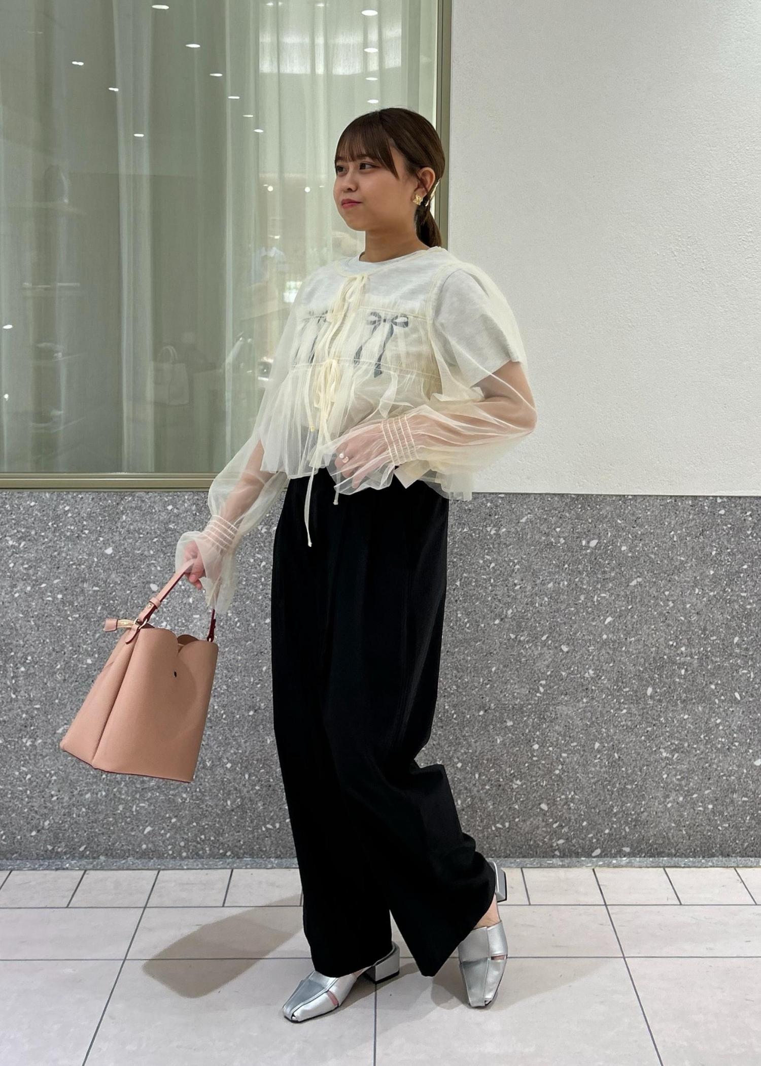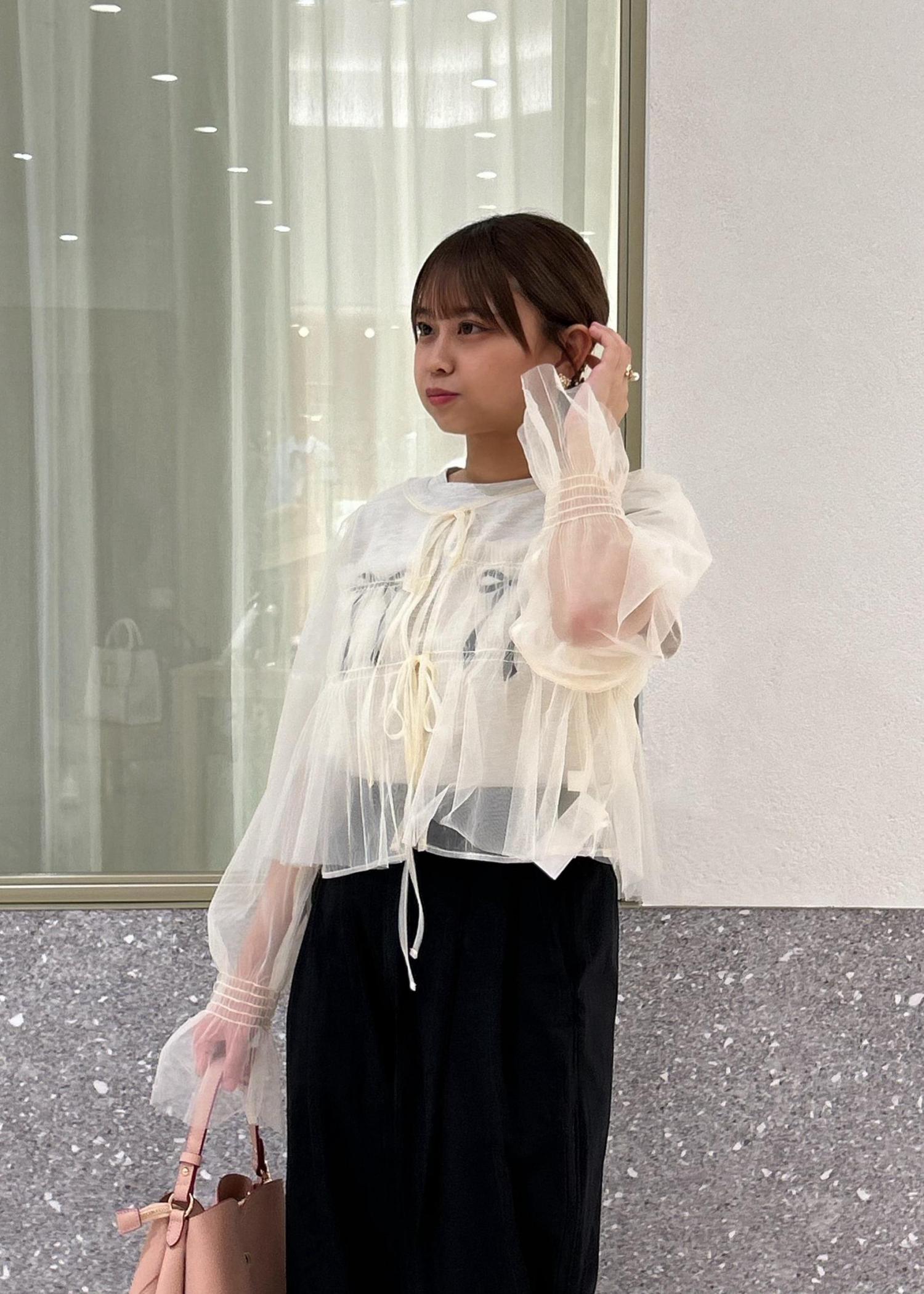 アウトレットVIS【前後2WAY】袖シャーリングチュールリボンブラウスホワイト / F¥2,196レビューとても柔らかく軽いので着心地がいいです◎