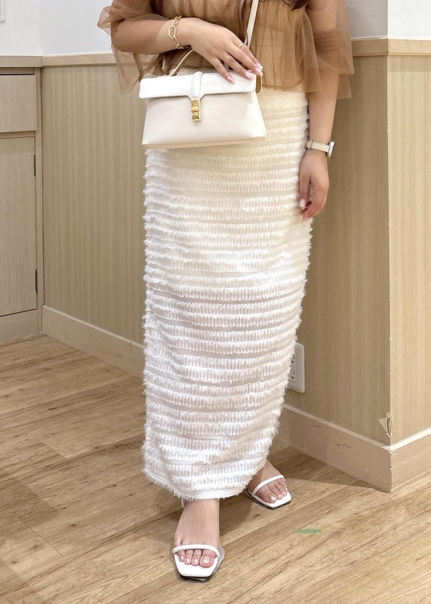 アウトレットVIS【洗える】フリンジジャガードスリット入りロングスカートキナリ / F¥2,196レビュー私の身長で着用しくるぶしにかかるロング丈でした!