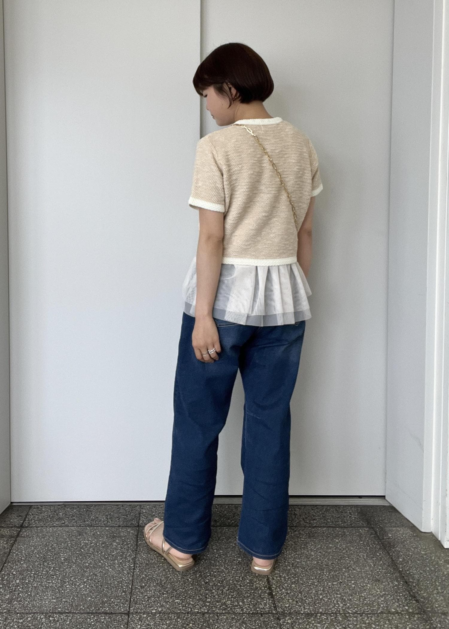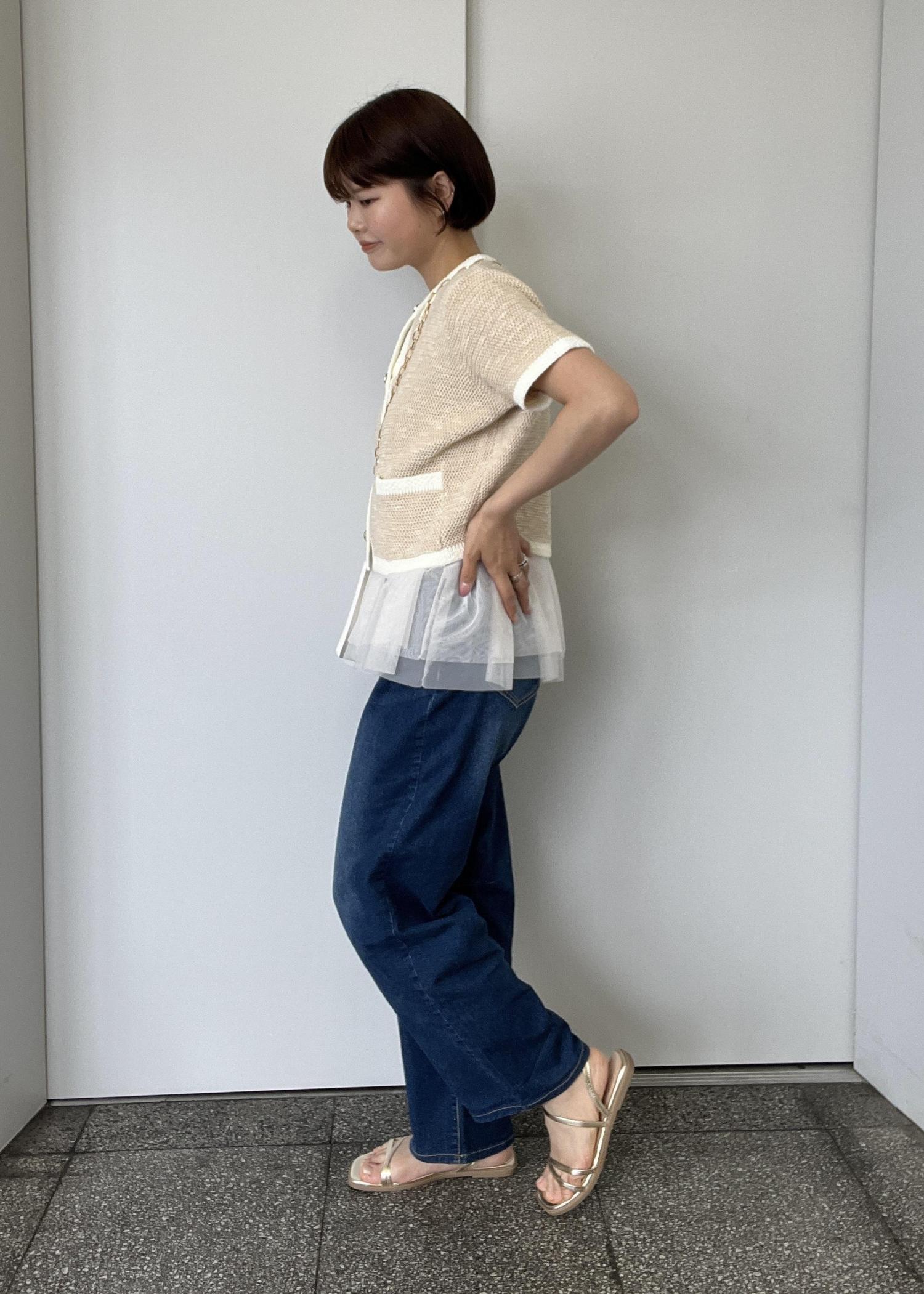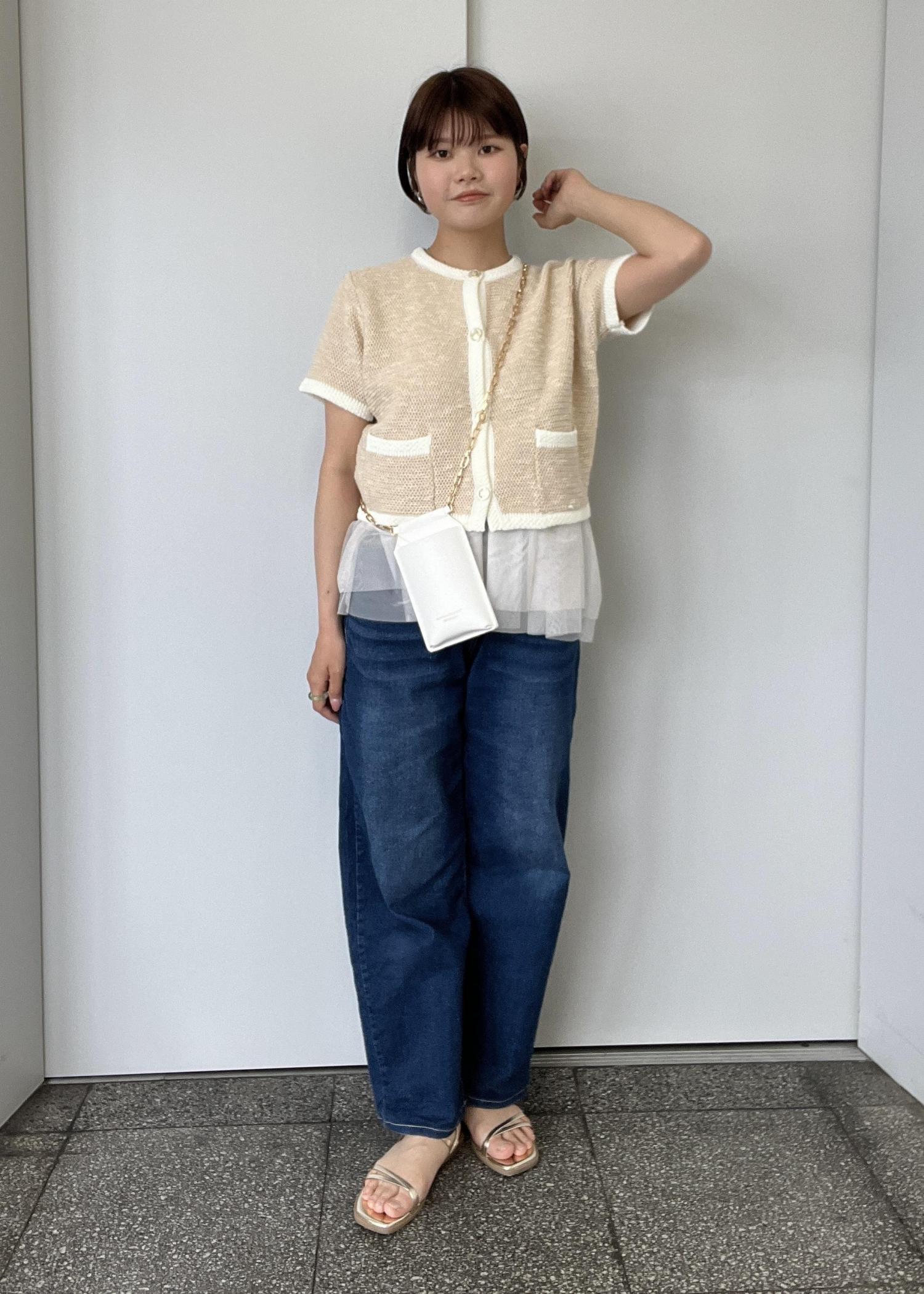 金釦カーディガンをメインに夏のレイヤードコーデを