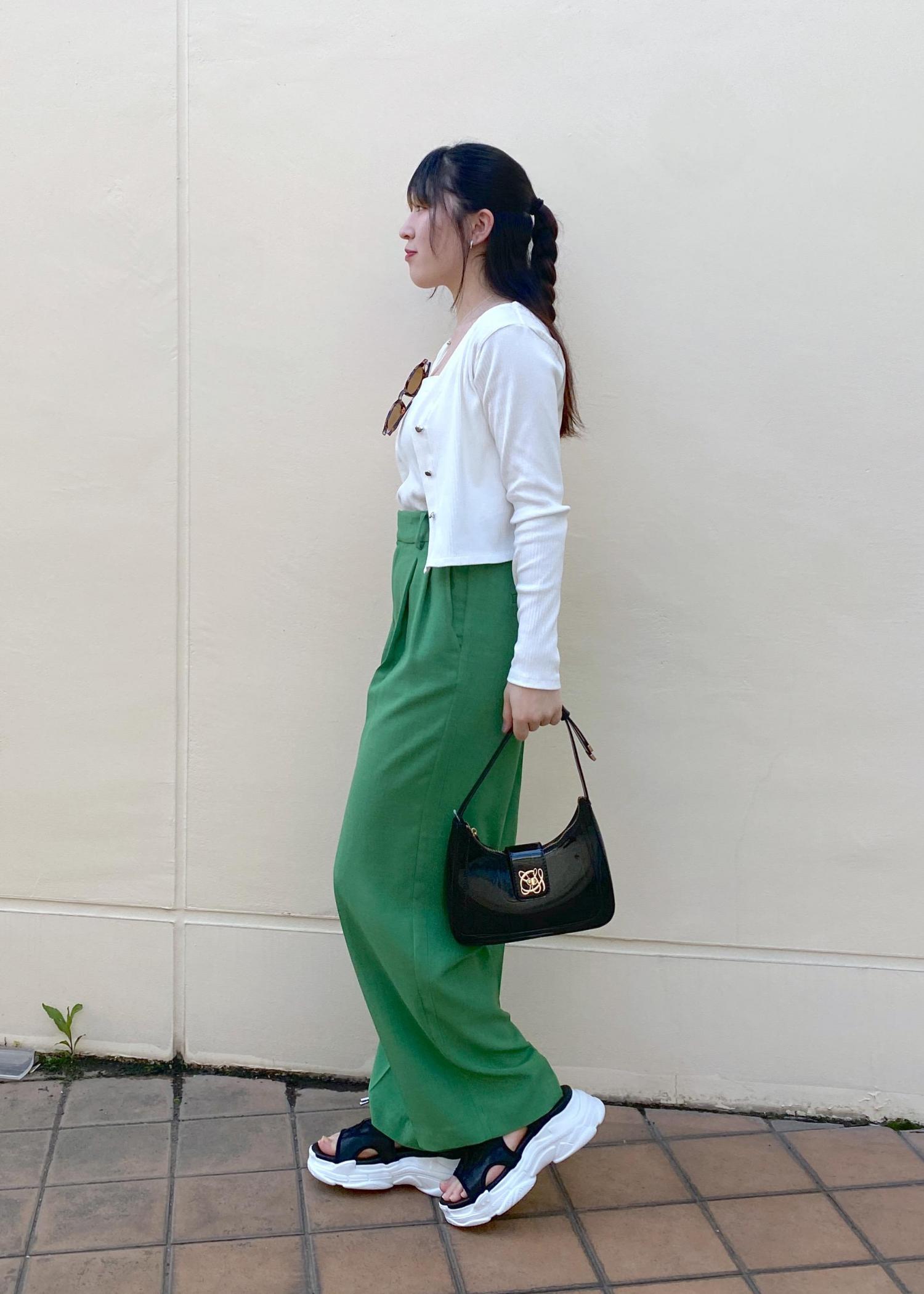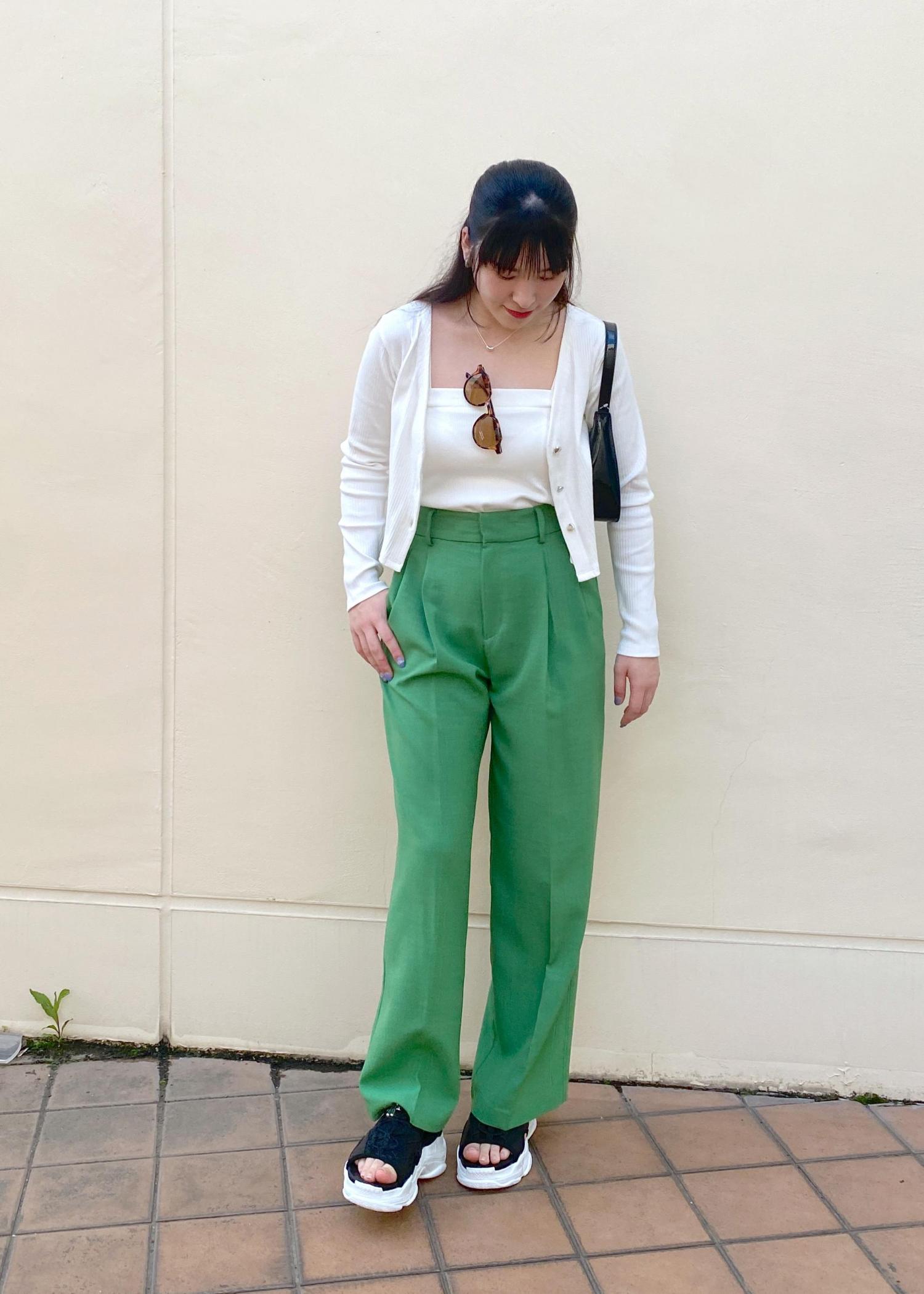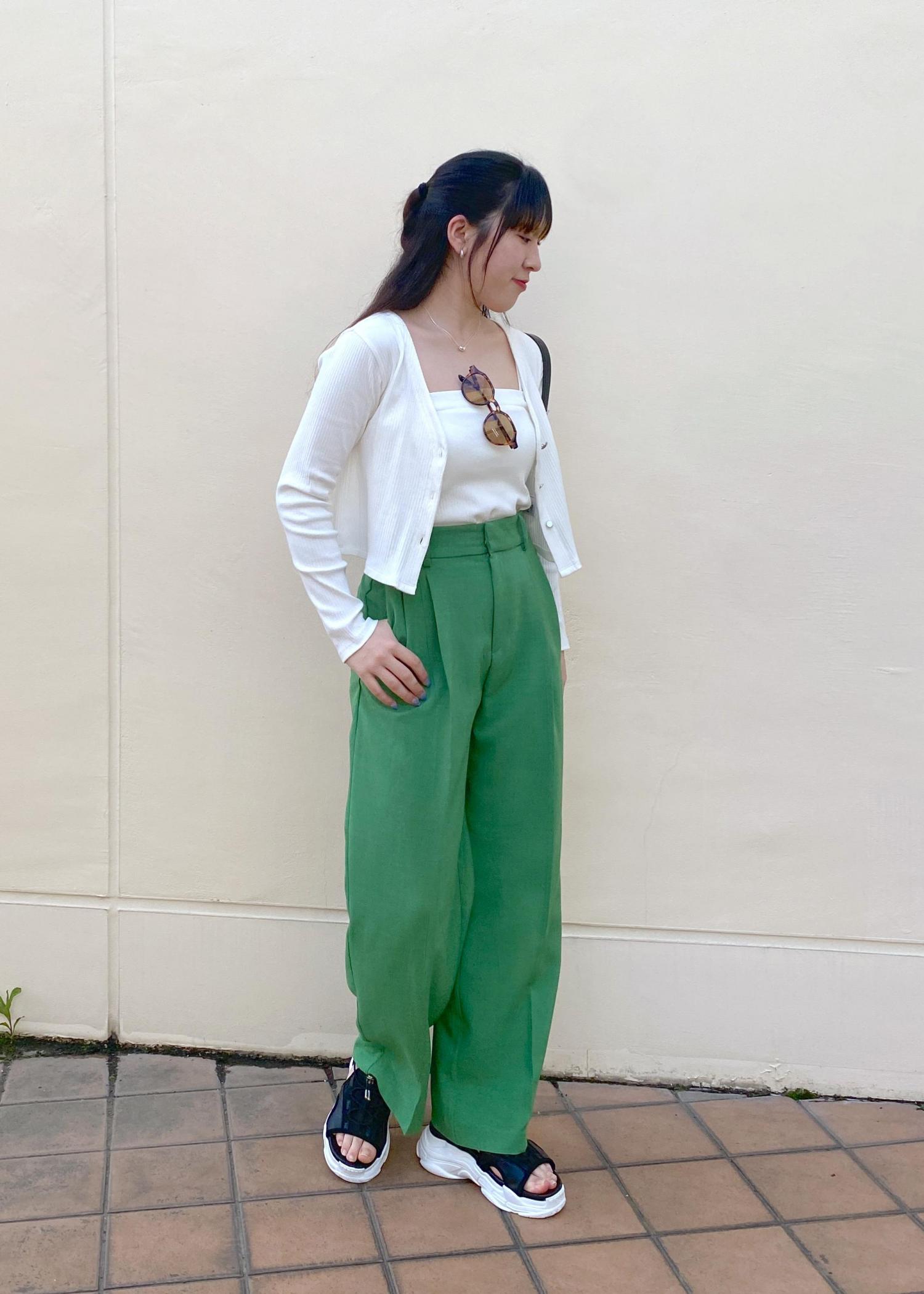 VIS【美easy】リネンライクワンタックワイドスラックスパンツグリーン / M¥3,951レビュー冷感接触のパンツは夏でも涼しく履けます!