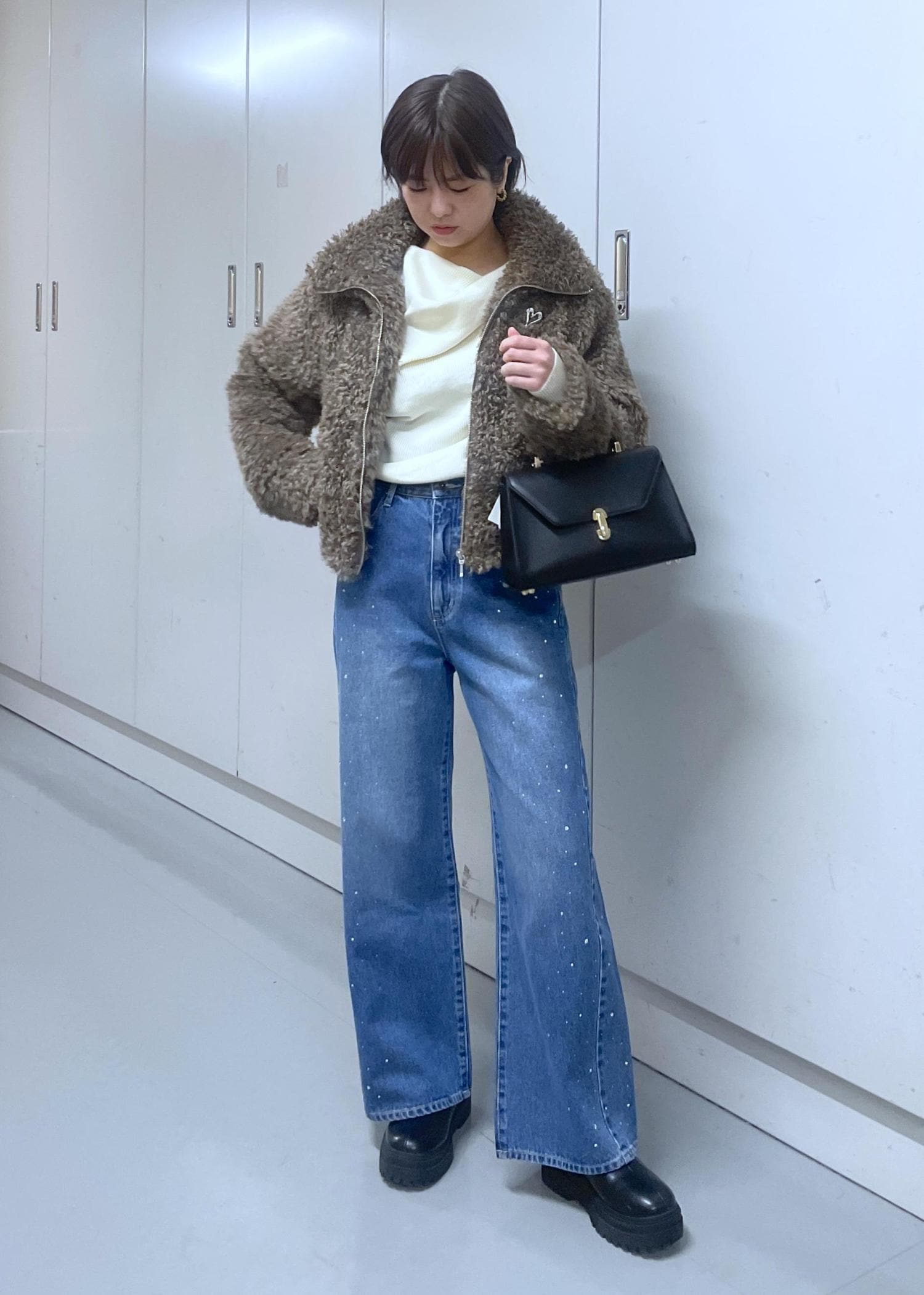 膝下は透け感あり、今年らしい涼しげな印象で履いていただけます。