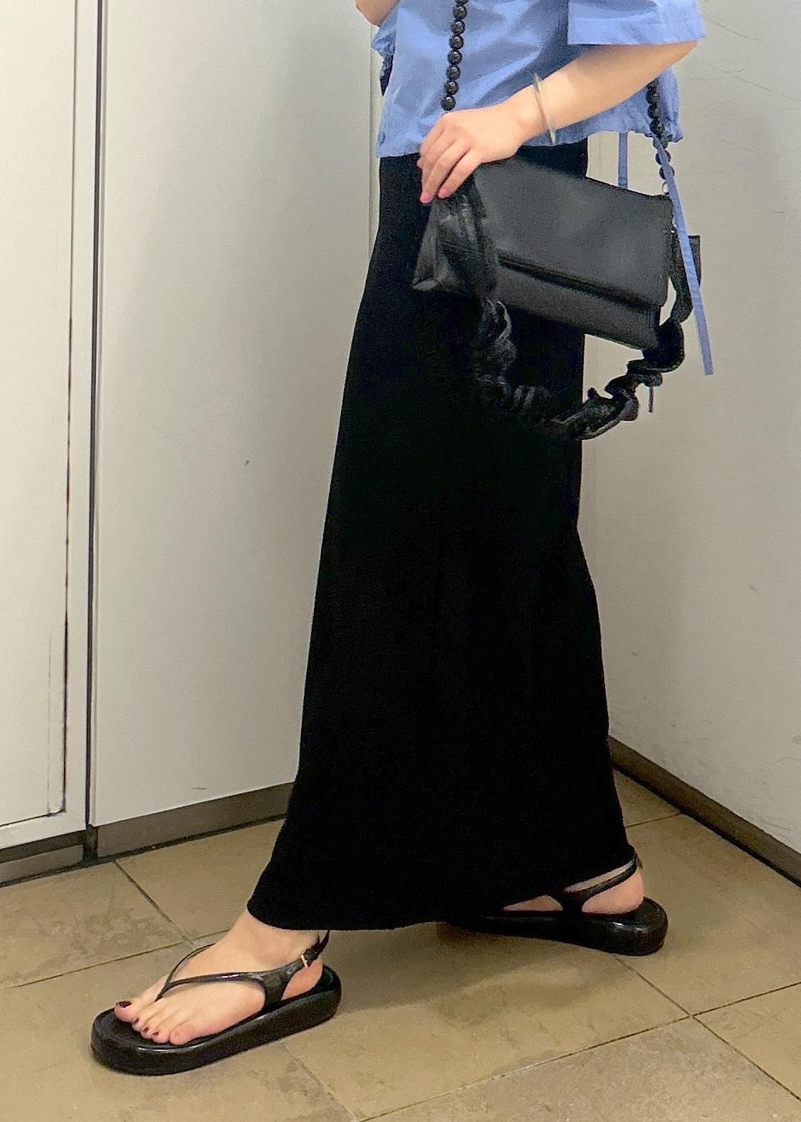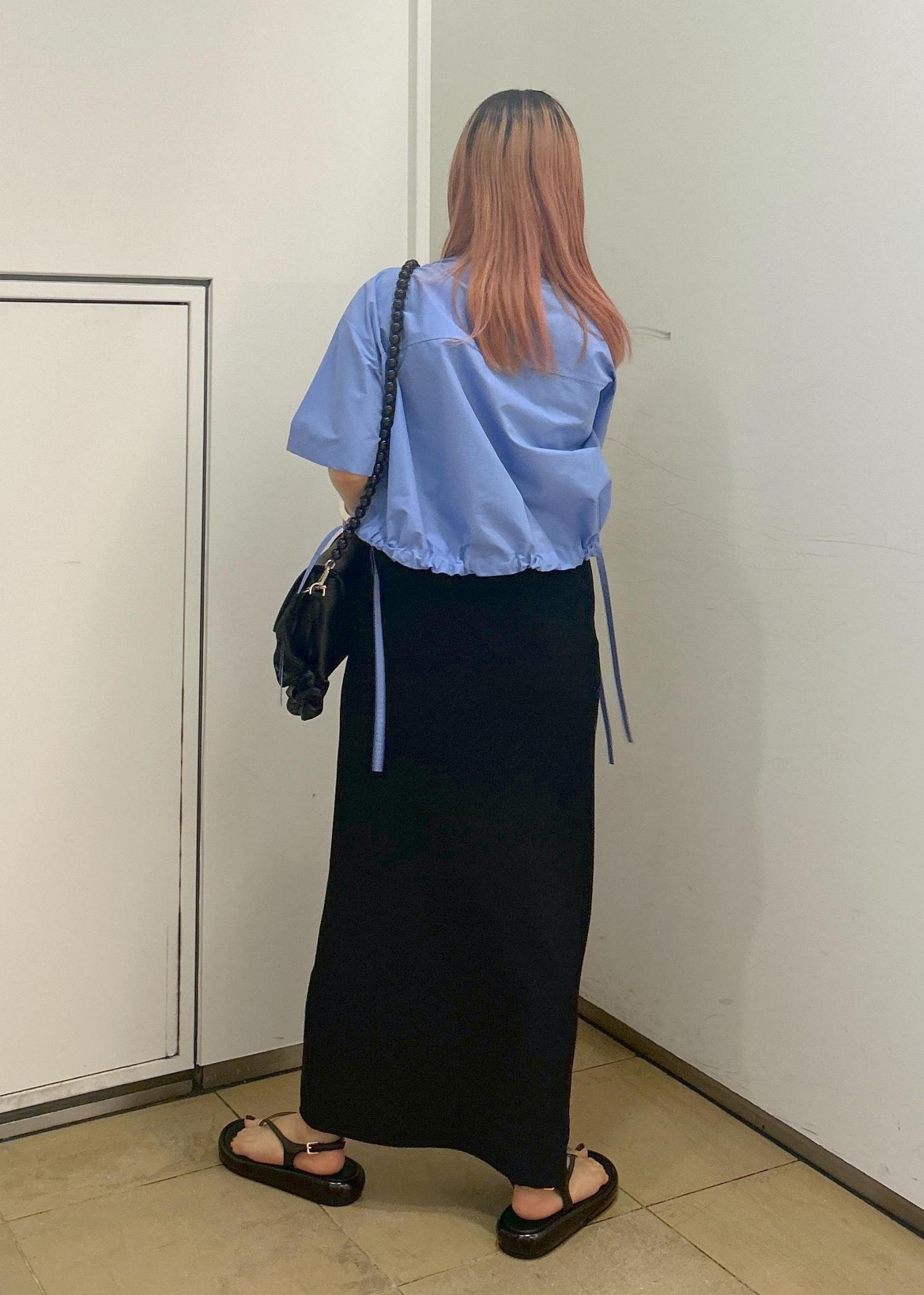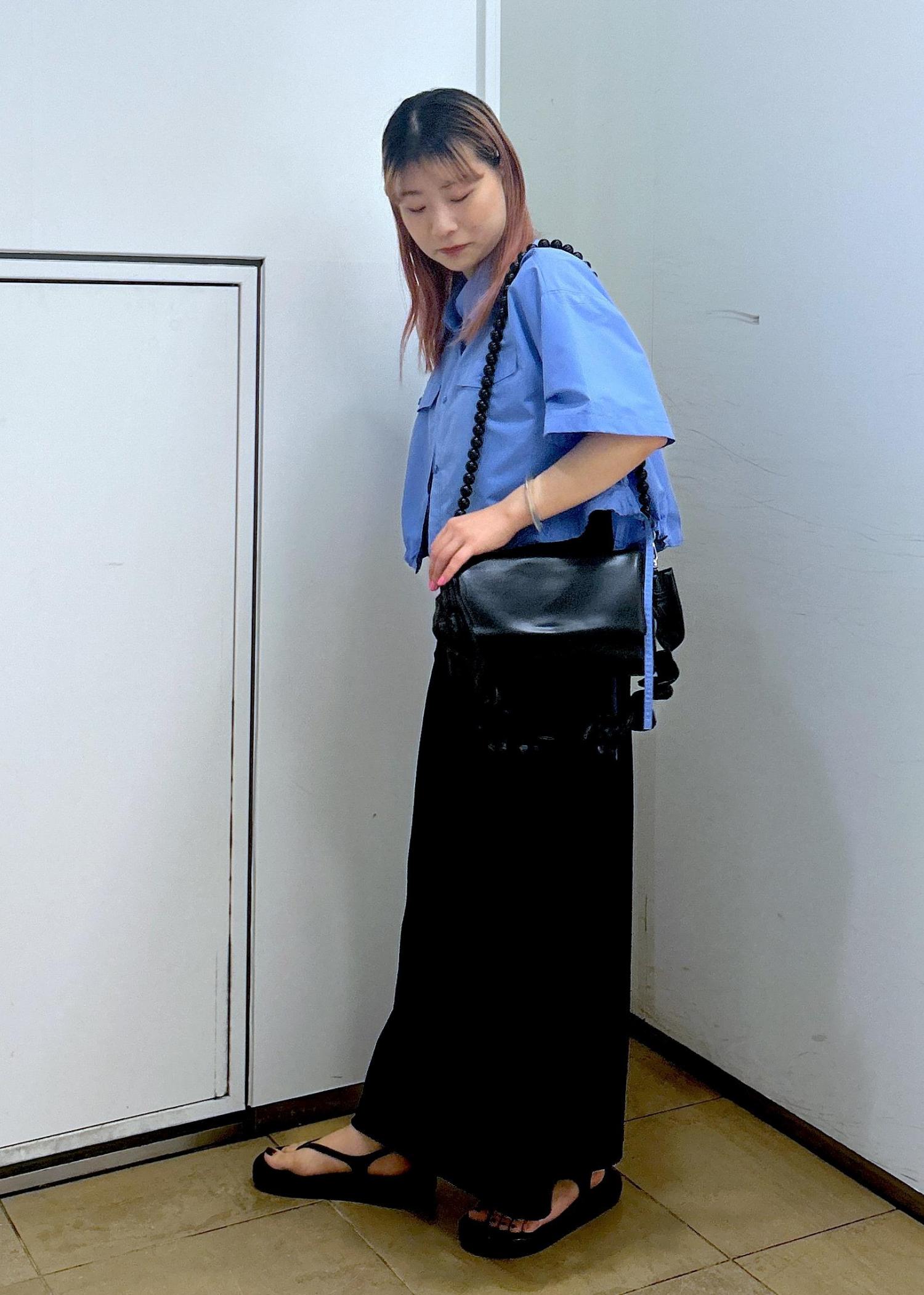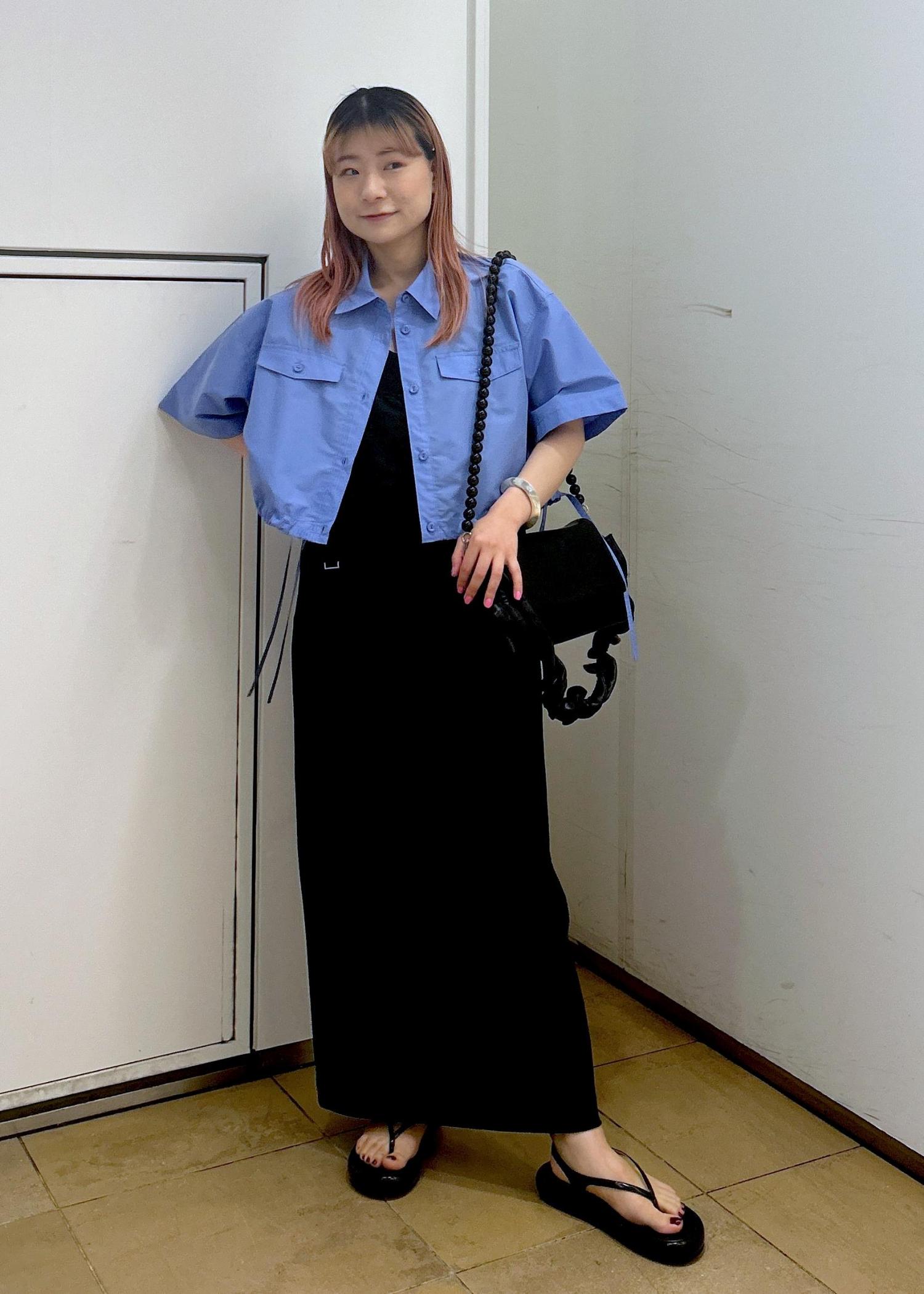 こちらのシャツはクロップド丈なのでワンピースに合わせても