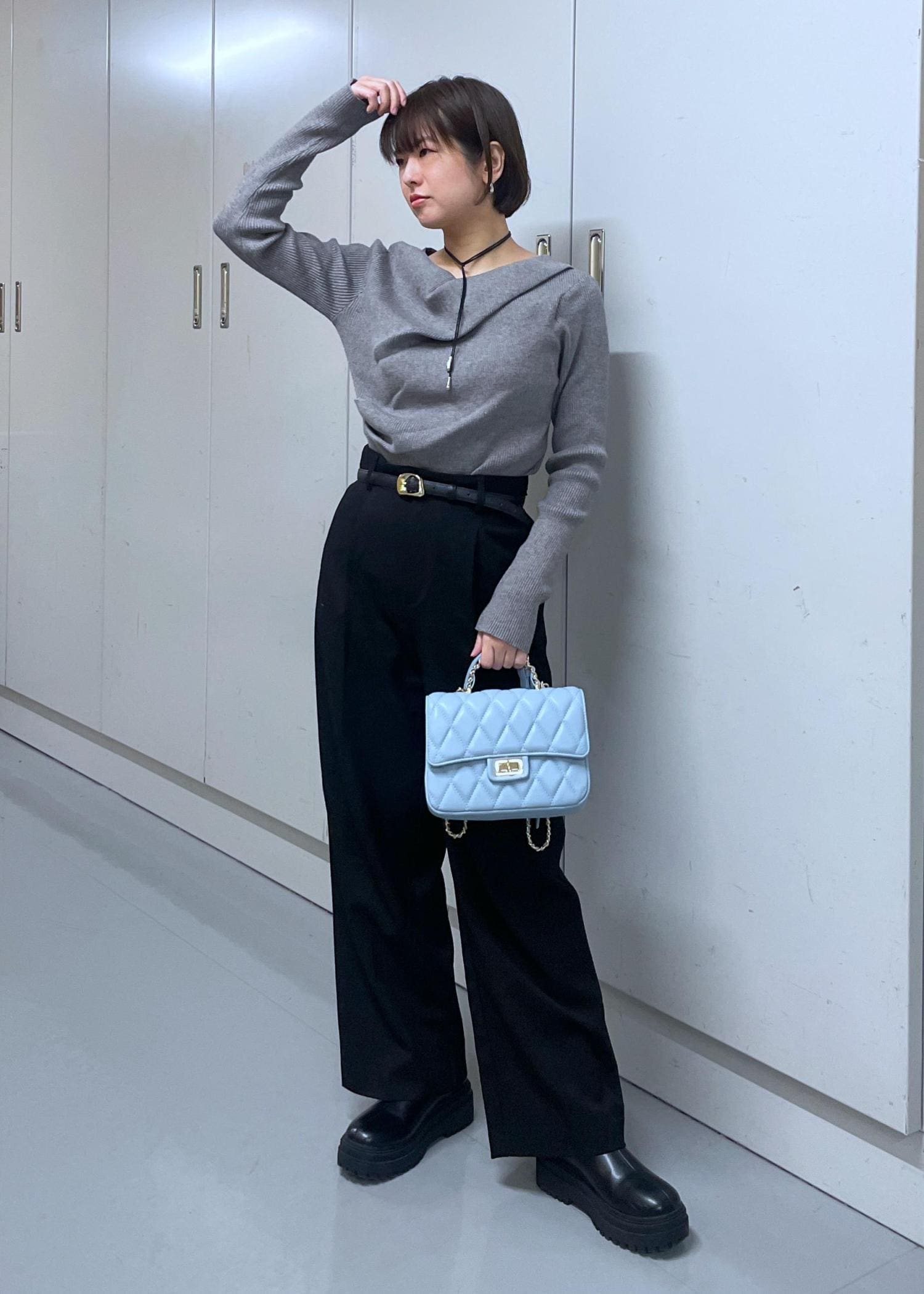 ベルトの長さを調節すると、肩掛けや斜めがけでも持てます。 -