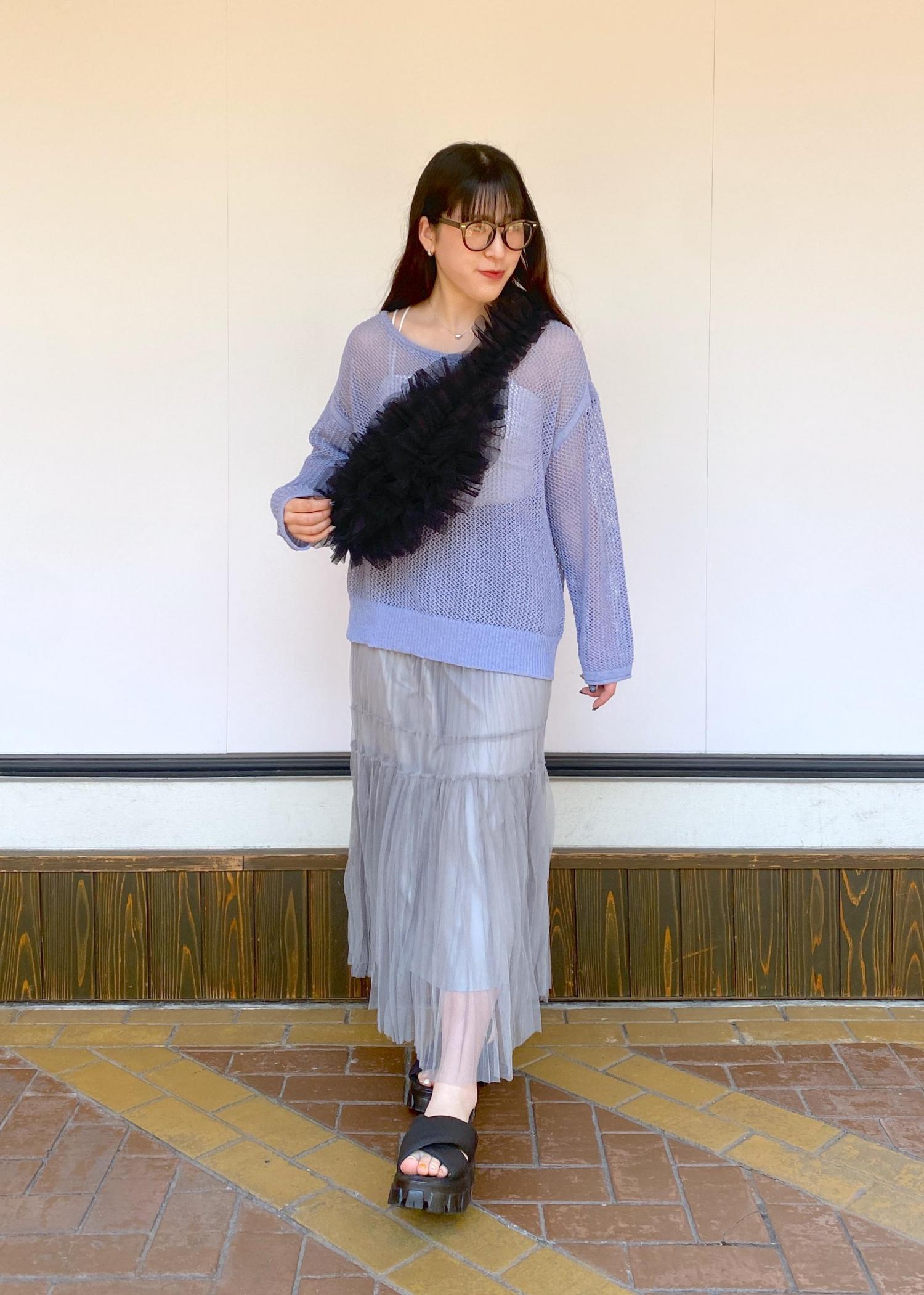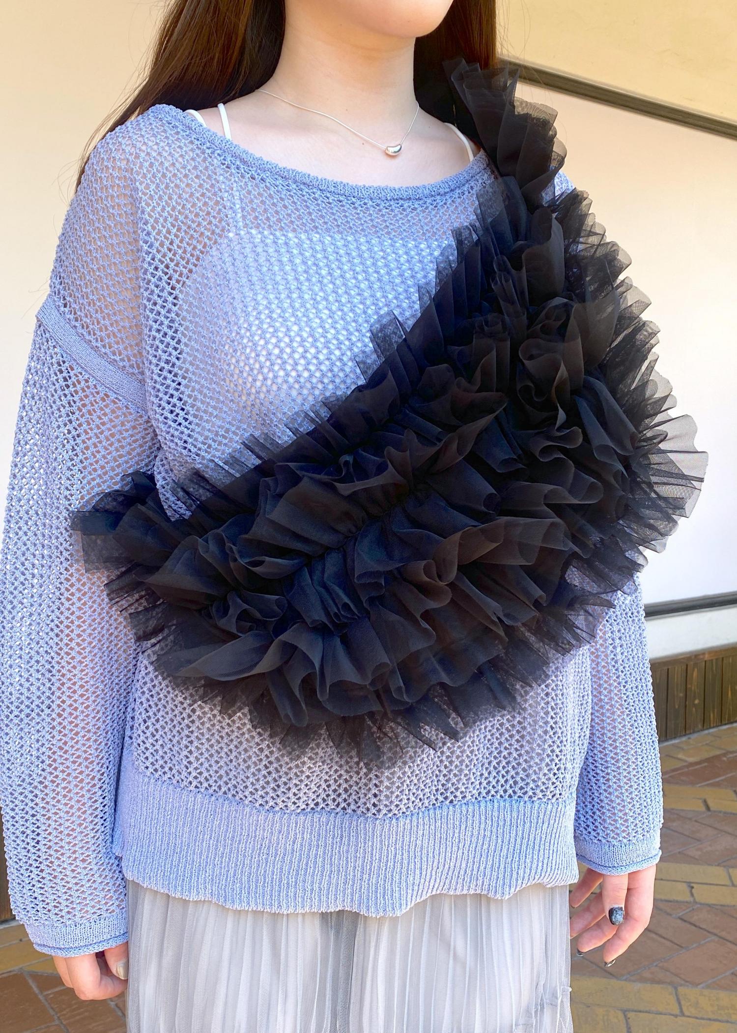 アウトレットVISCASUAL チュールフリルショルダーブラック / F¥2,768レビューコーデが一気に華やかに!