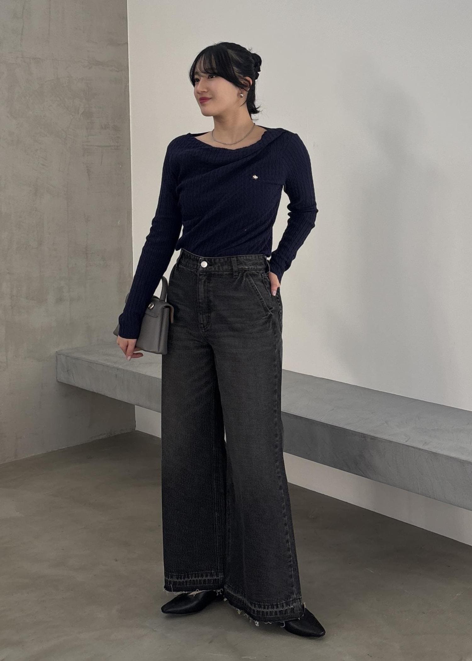 クロシェ編みがおしゃれで、トレンドの短丈が脚長効果にも◎