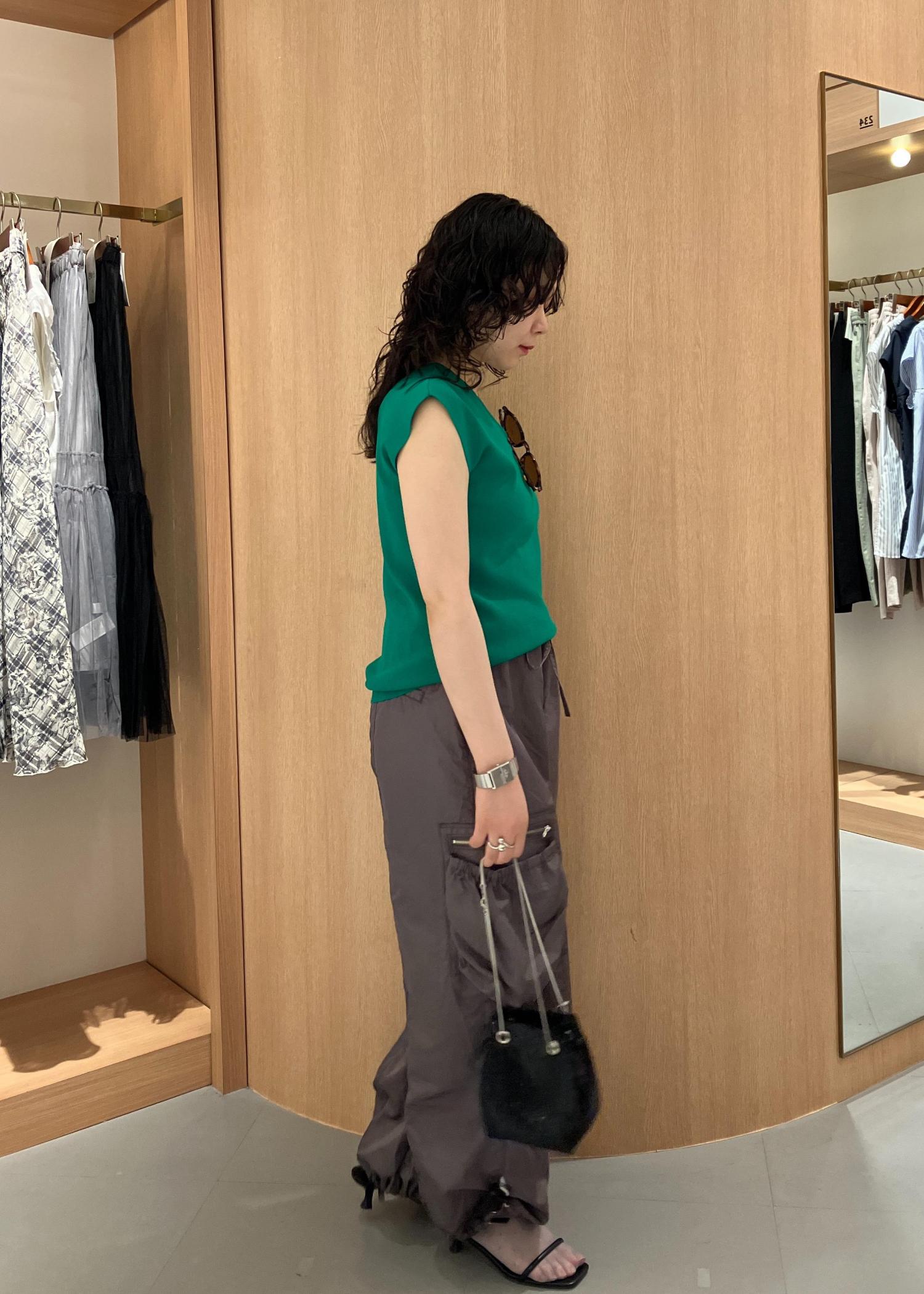 小物は上品なものを選び、カーゴパンツのカジュアルな印象を緩和させて女性らしさのあるコーデに◎
