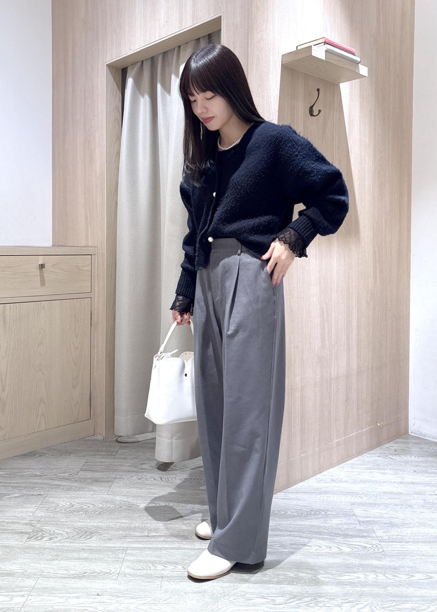 フェミニンなシアートップスにハイウエストパンツを合わせた大人フェミニンコーデ♪