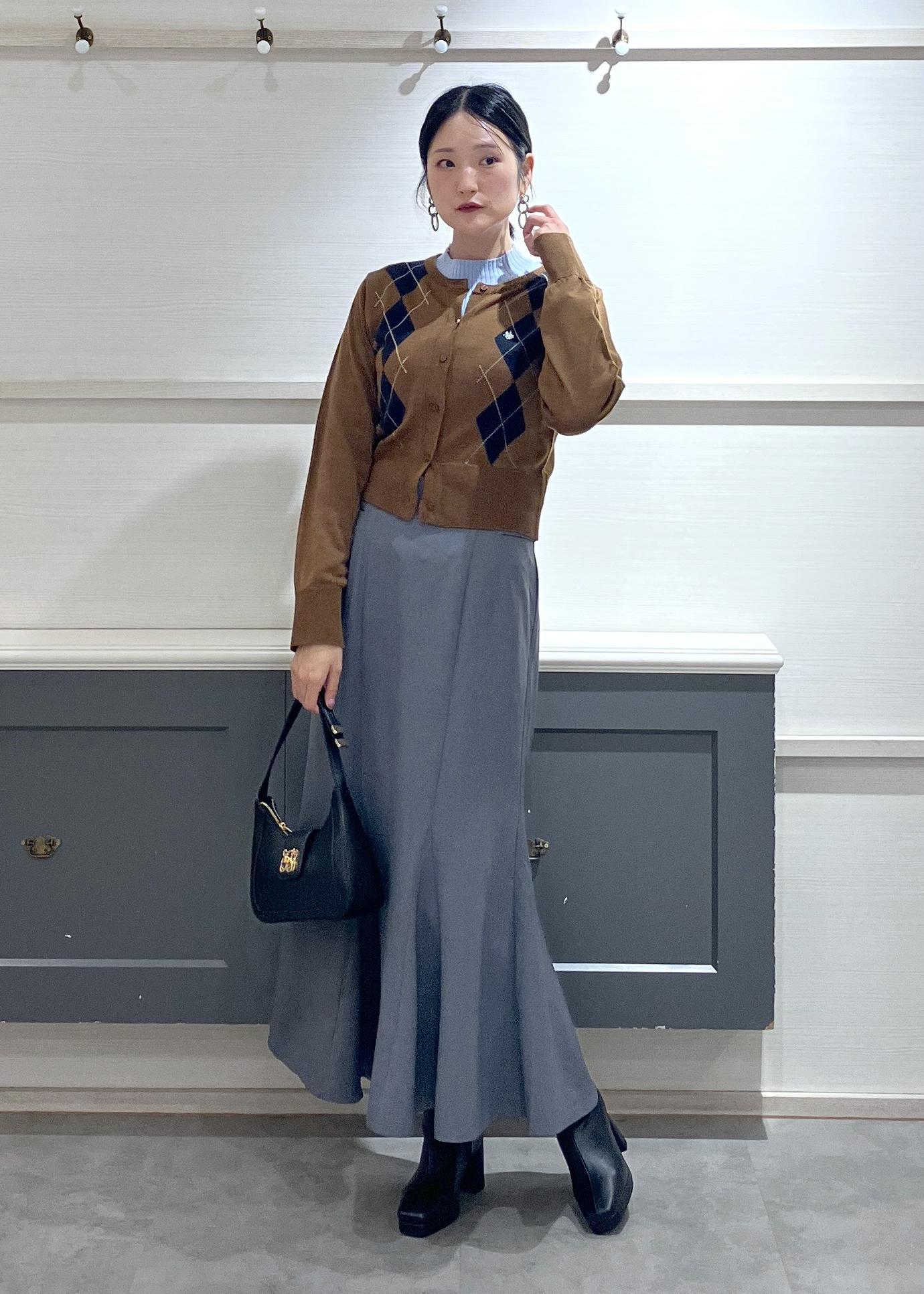ブラウンのワントーンコーデに優しいブルーのシャツを羽織ると、どちらの色もとても引き立ちました♡