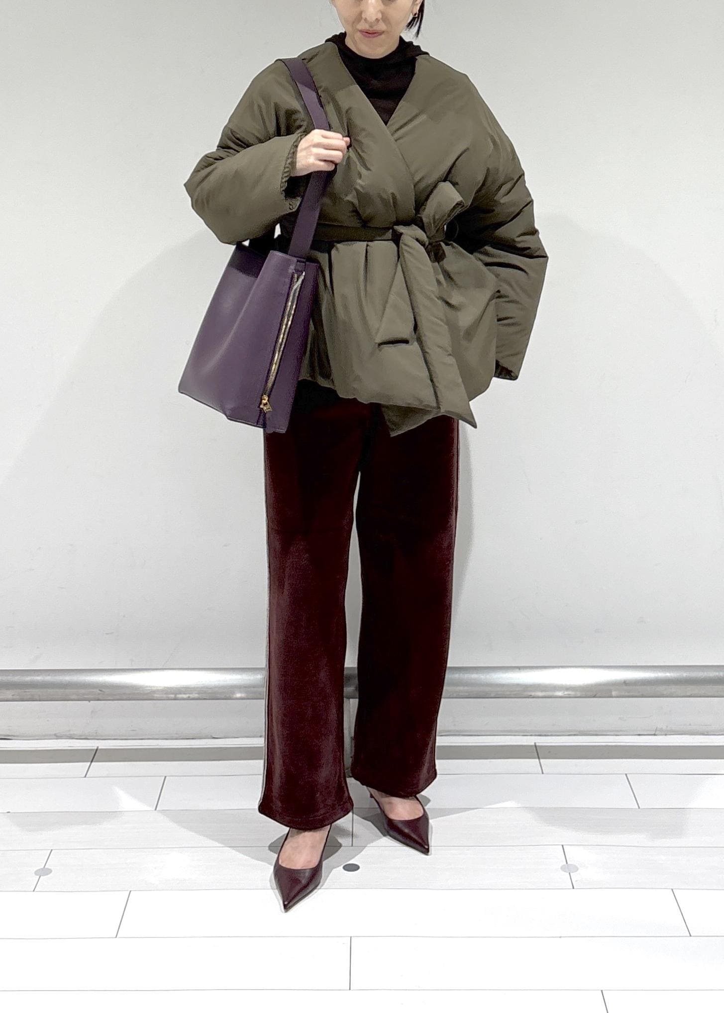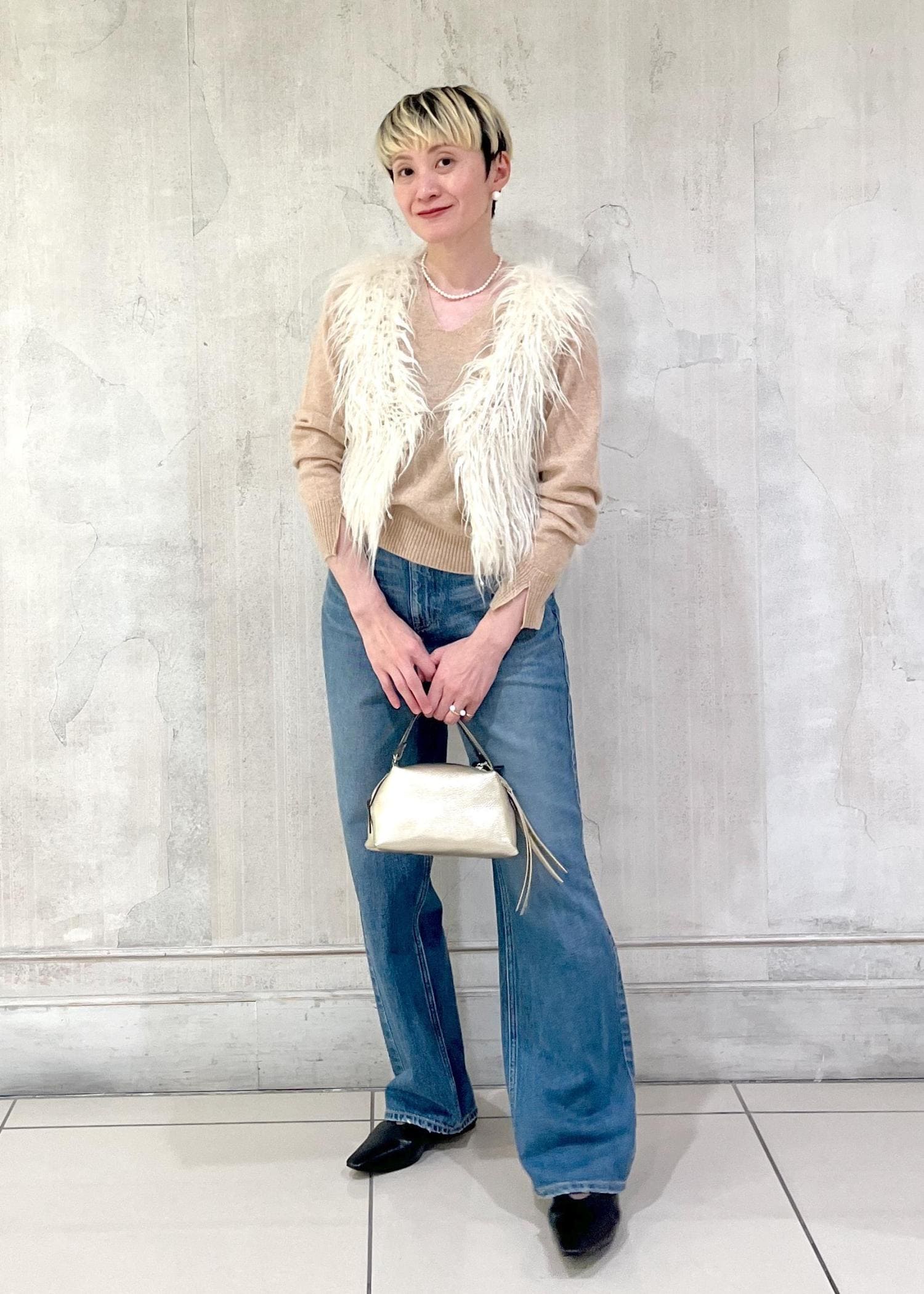 スラックスパンツなど、マニッシュなボトムスとの合わせが今の気分です。