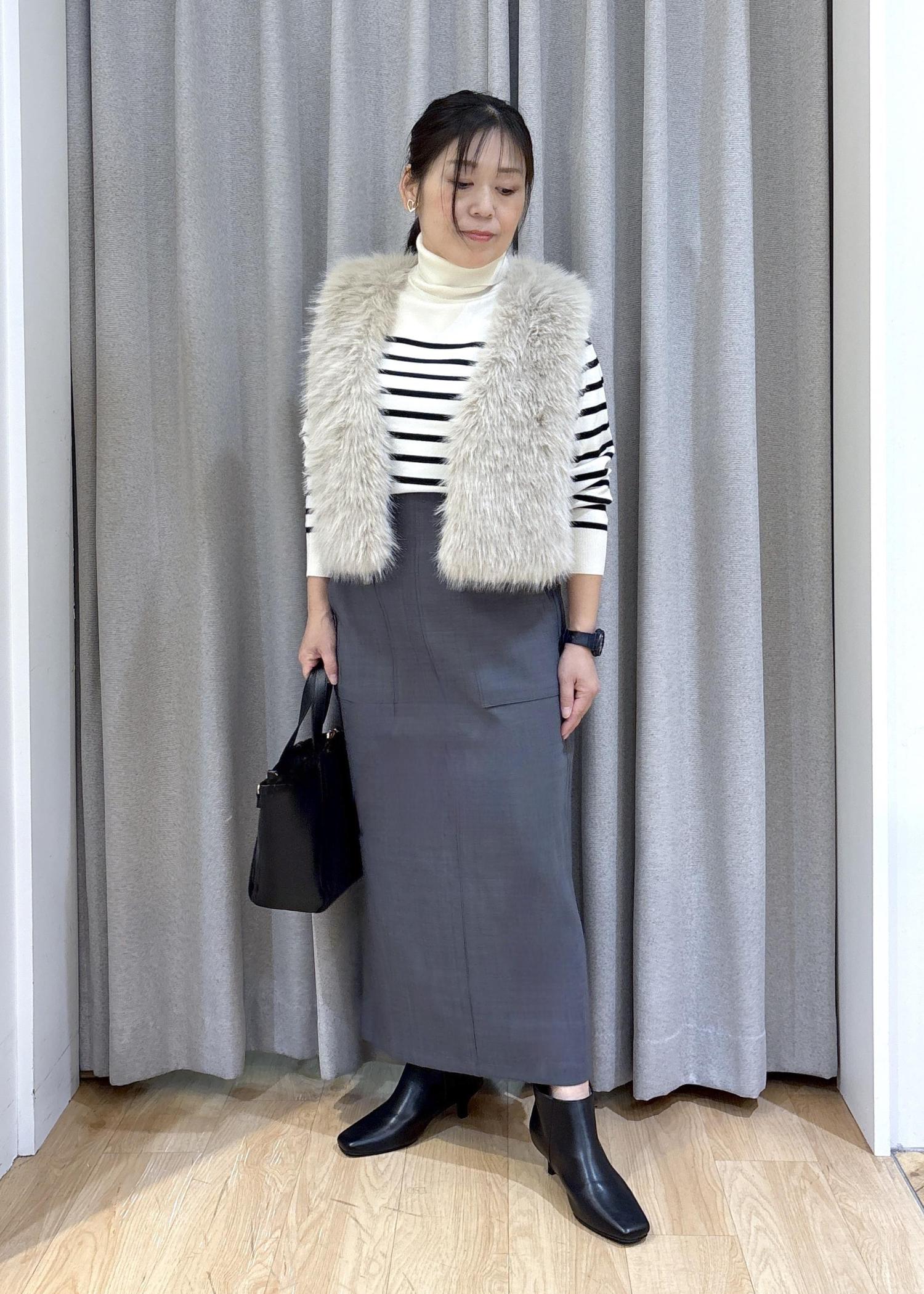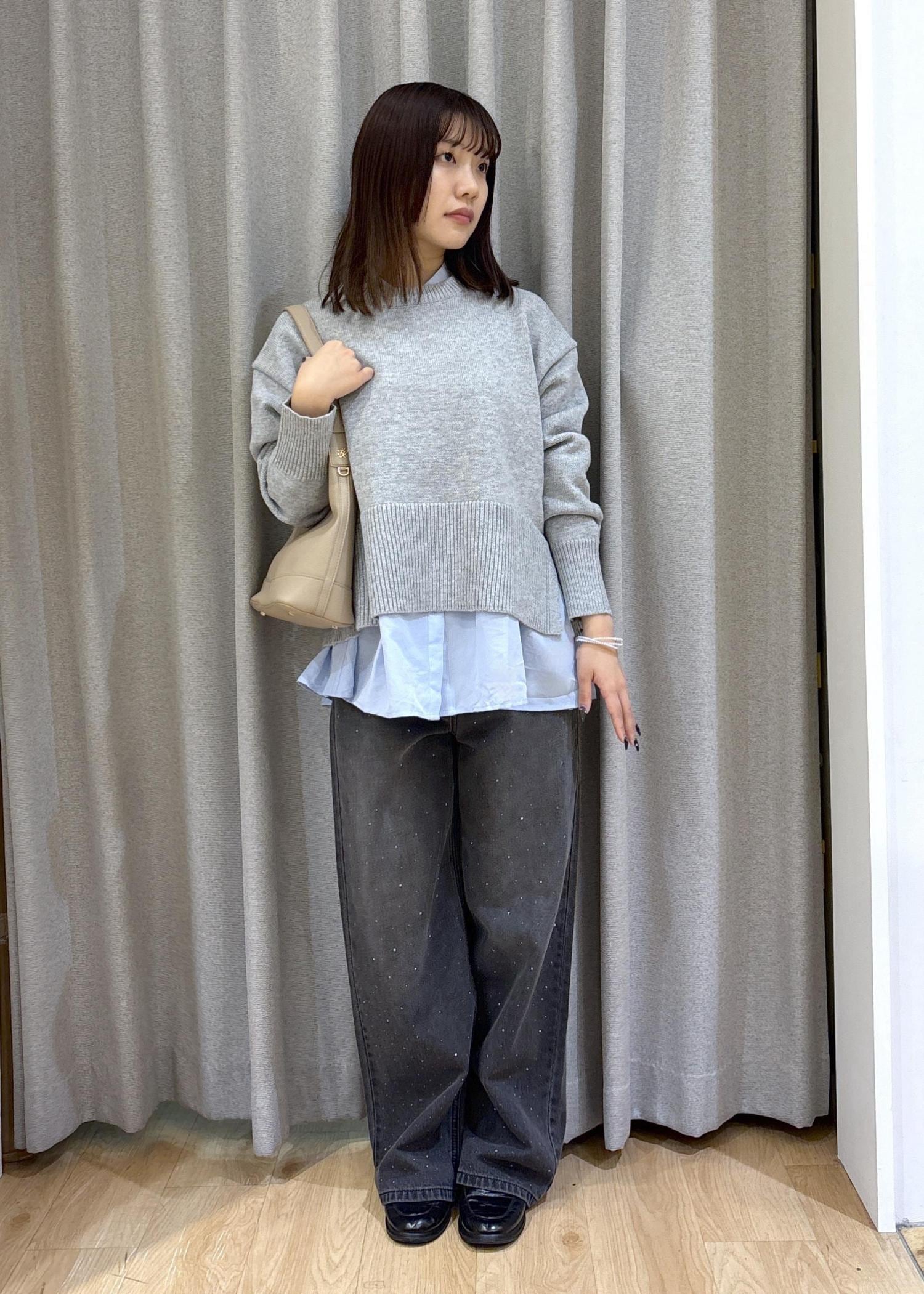 短丈のインナーと合わせているので、程よい肌見せスタイリングが今の季節にマッチしています♬.*゚