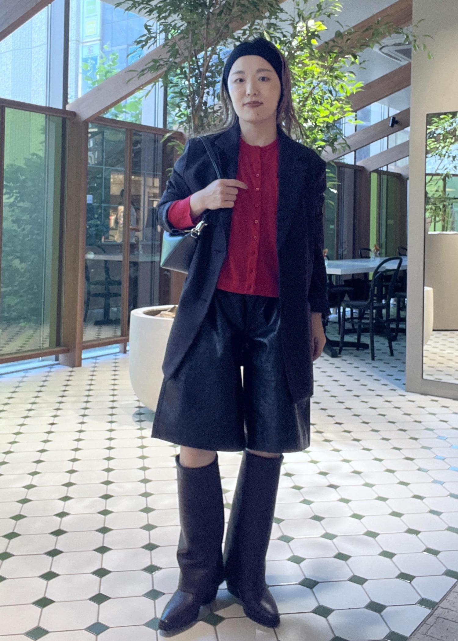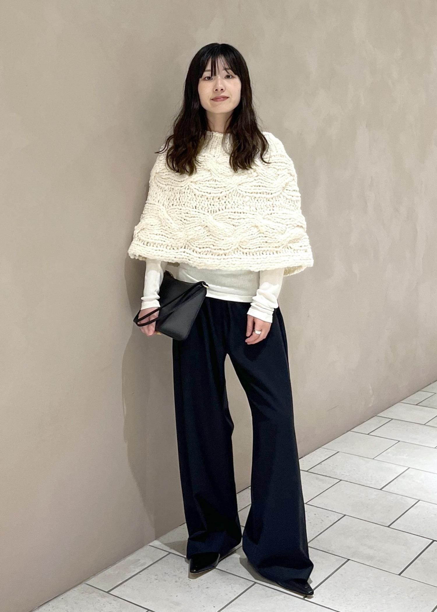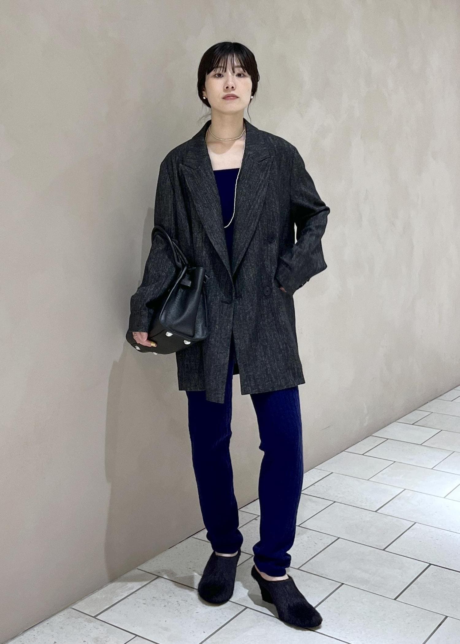 秋冬見えしながらも、サラッとしているので、夏物に飽きた方、秋見せしたい方の最初の一本にぴったりです。ウールが入っており少しザラっとした質感です。