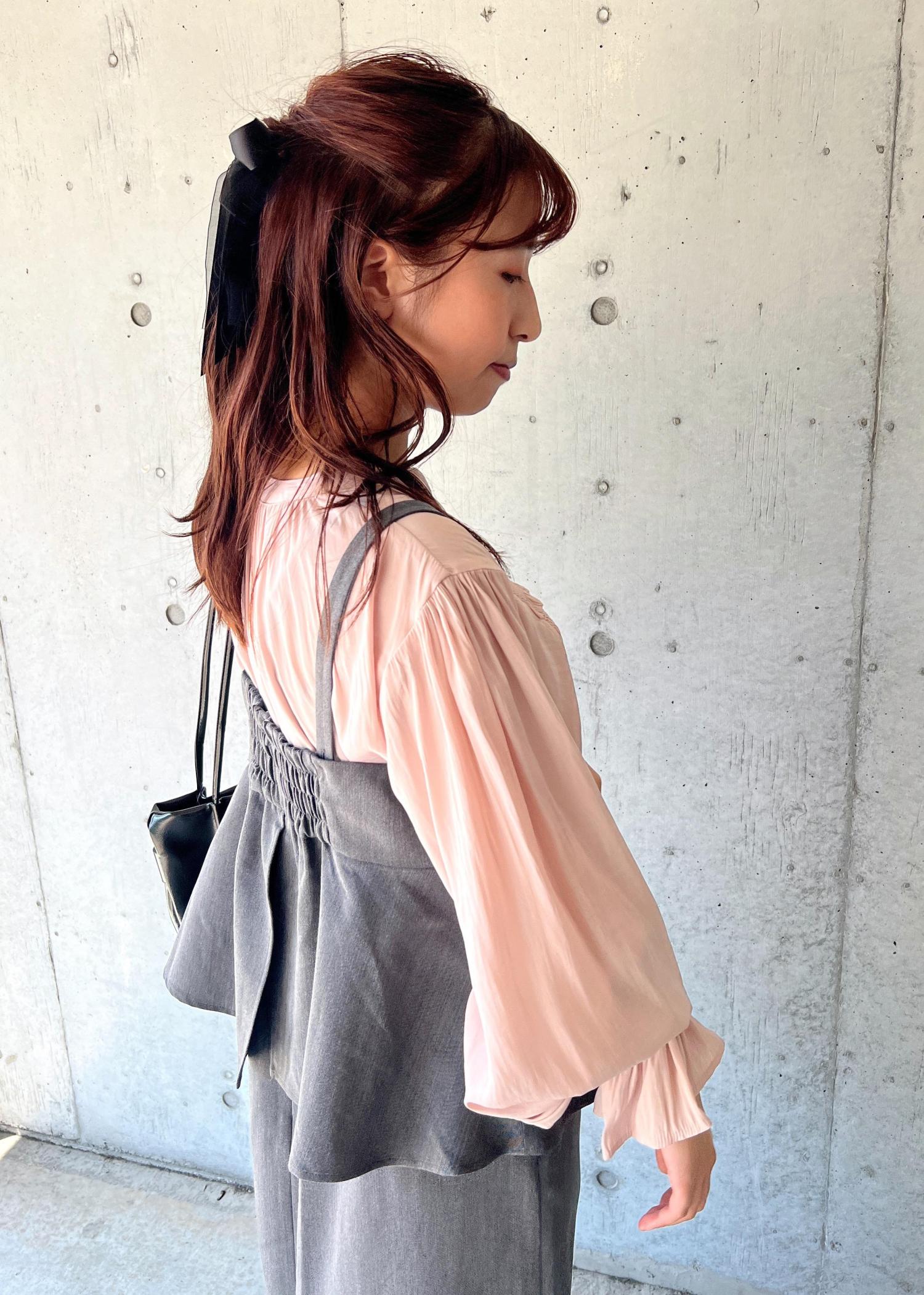 VIS割繊シャーリングミニフリルブラウス/洗えるピンク / F¥4,940レビュー袖のデザインが特徴的でシャーリングになっているので、腕まくりもしやすく暑い時期も安心◎