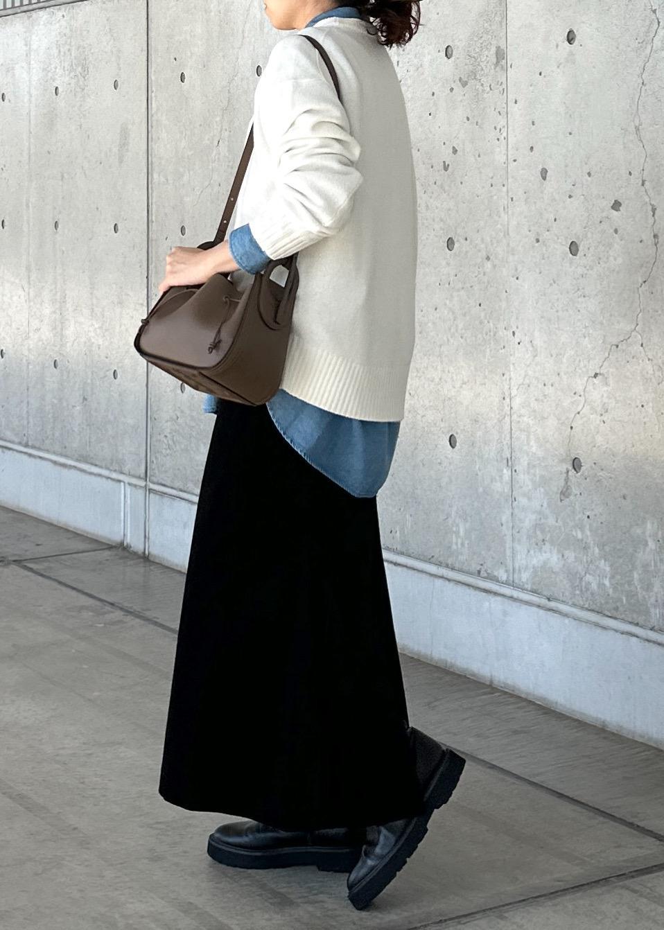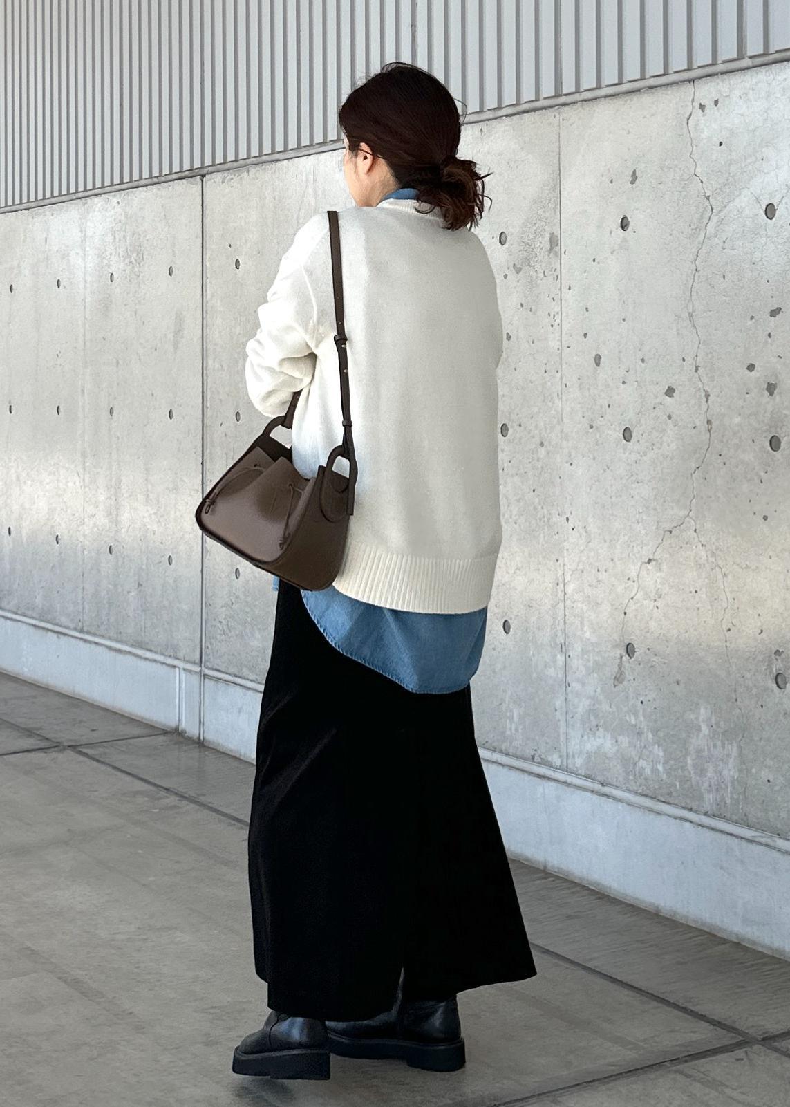 カジュアルな素材ですが、シルエットがエレガストなので少しキレイ目なコーディネートにもピッタリです。 -