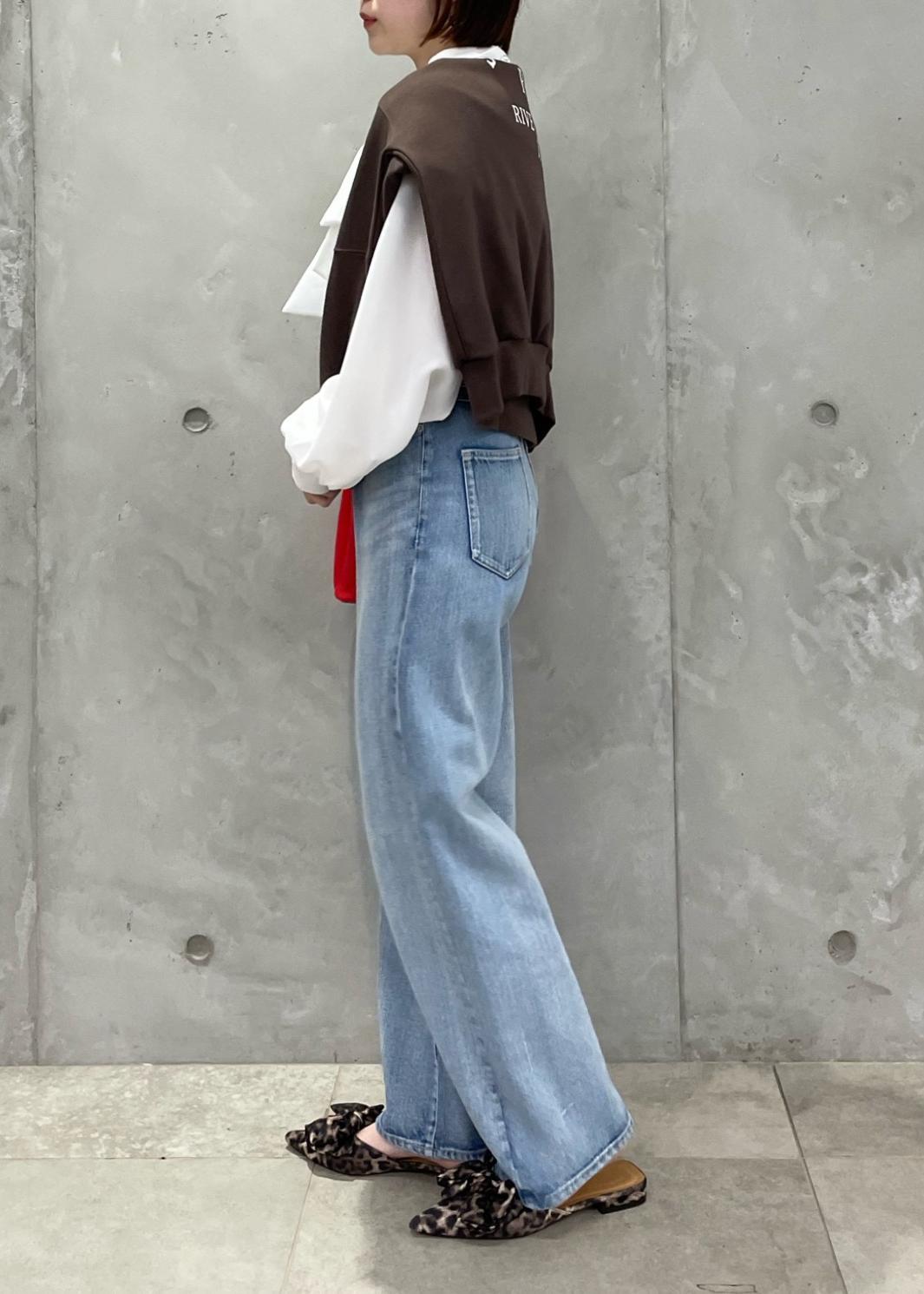 VISハイウエストストレートデニムサックス / M¥7,689レビュー身長159cm/Mサイズ着用。太すぎないストレートシルエットで全骨格に合うと思います!フラットシューズでギリギリ床につかないほどの着丈、ヒール合わせがよりスタイルアップ見えしておすすめです◎