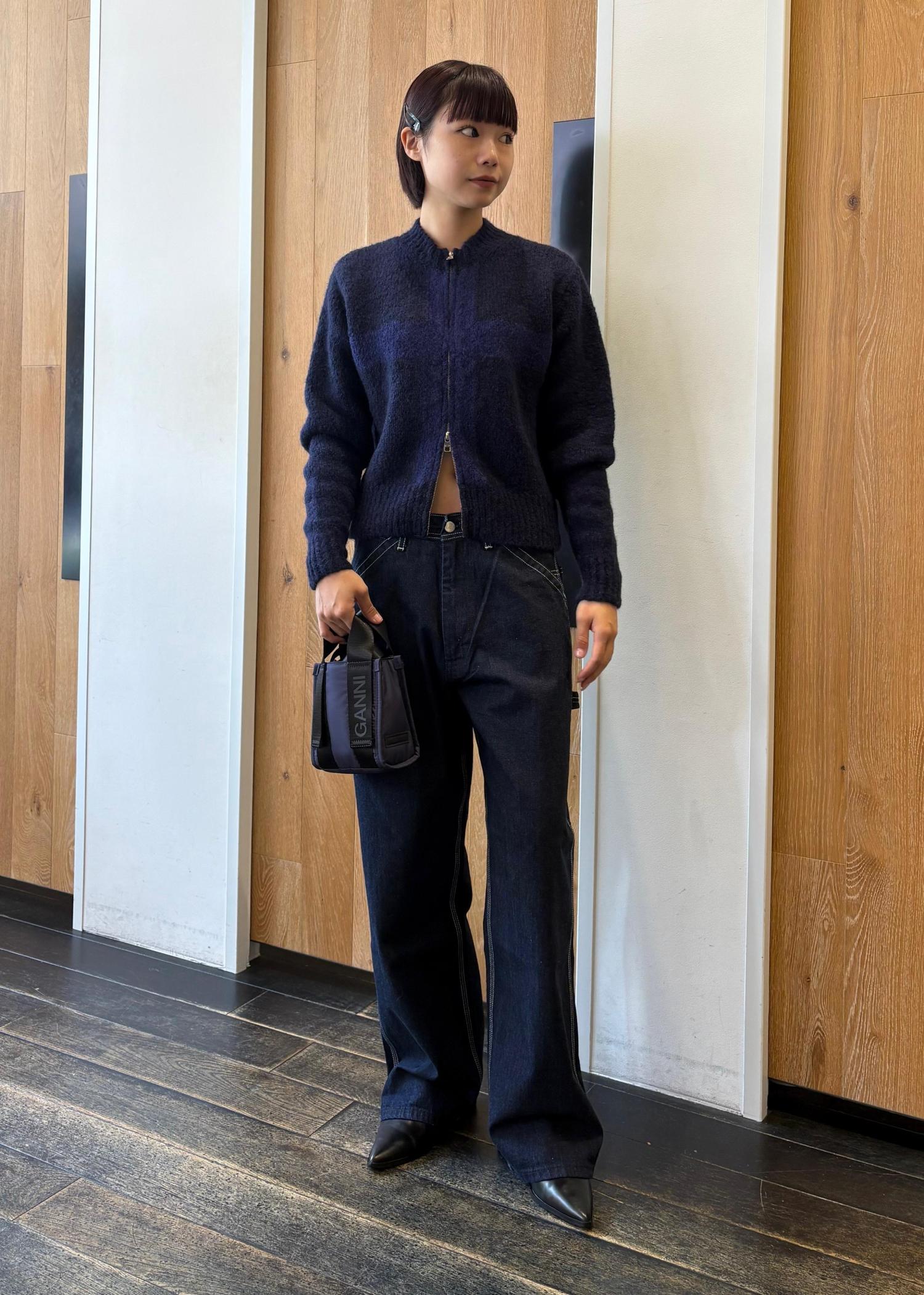 一見、ブルーとカーキの組み合わせは難しい気がしますが、