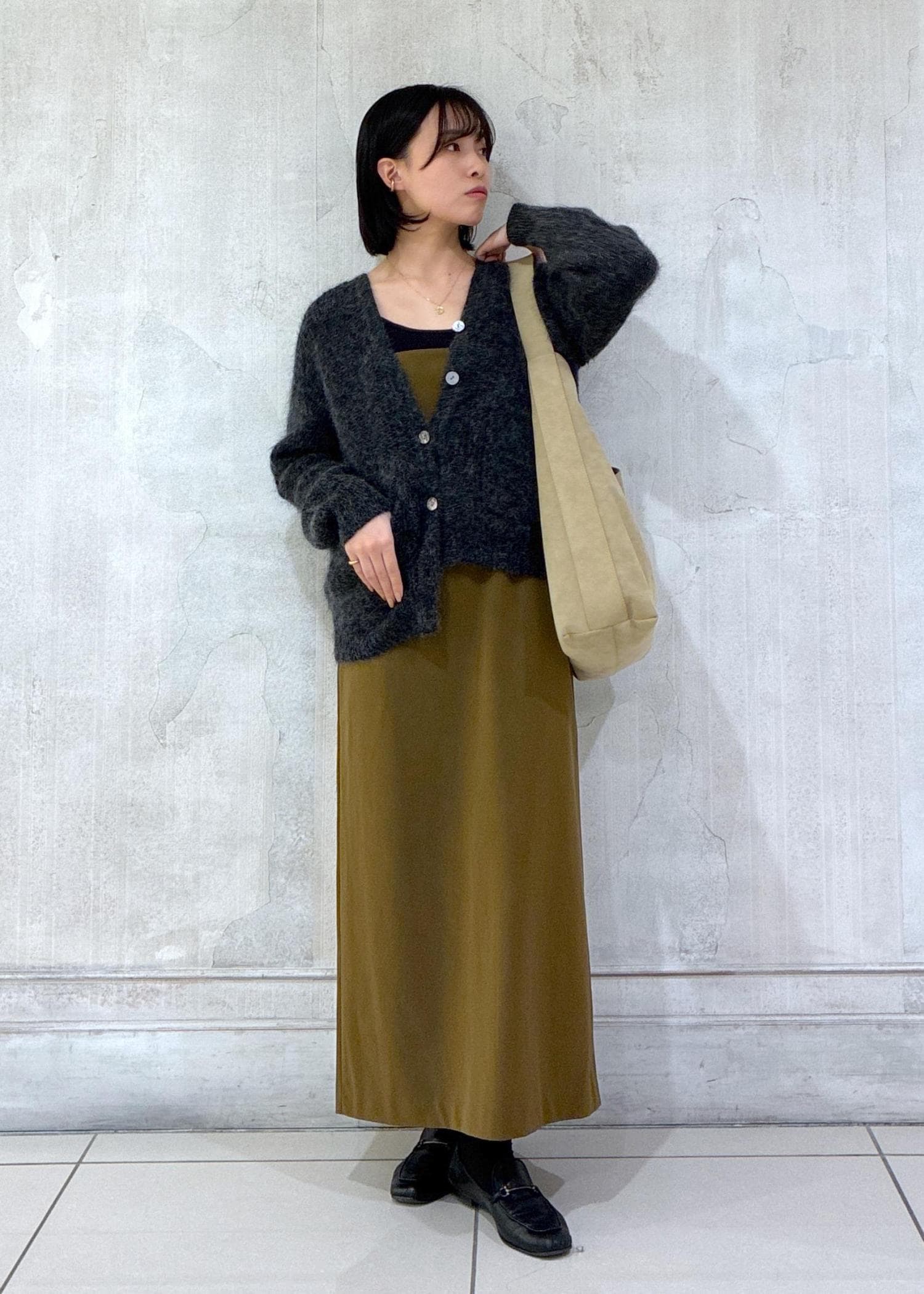 moi店舗でのみお取り扱いのある、別注サテンスカートが入荷して参りましたので、こちらを主役にスタイリングを組んでみました!