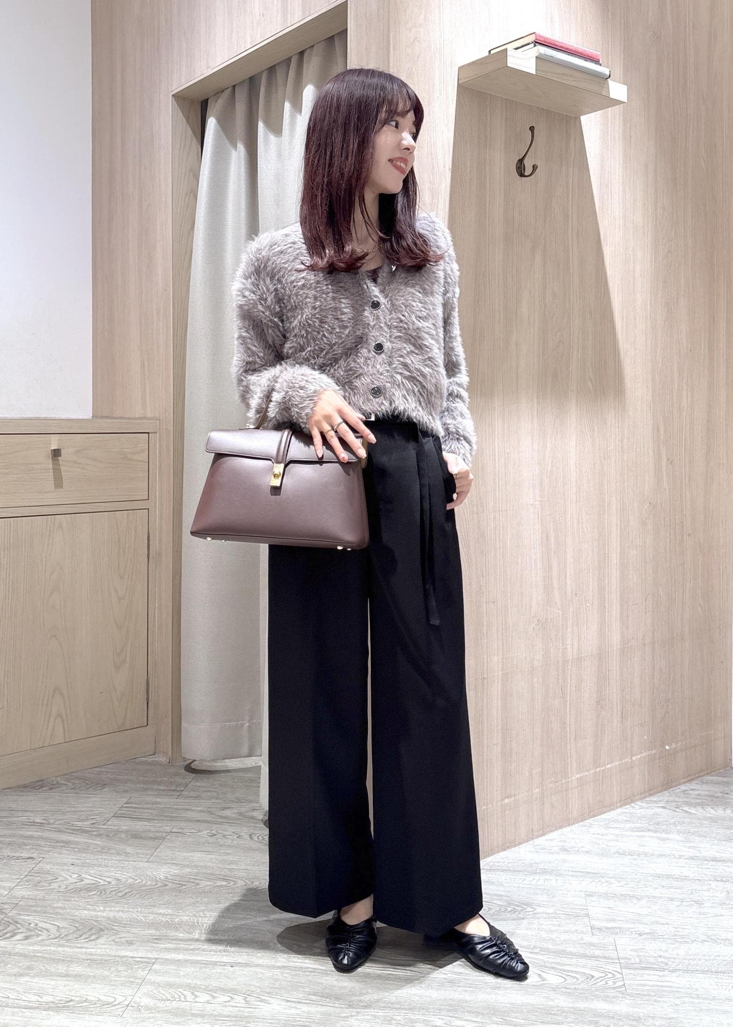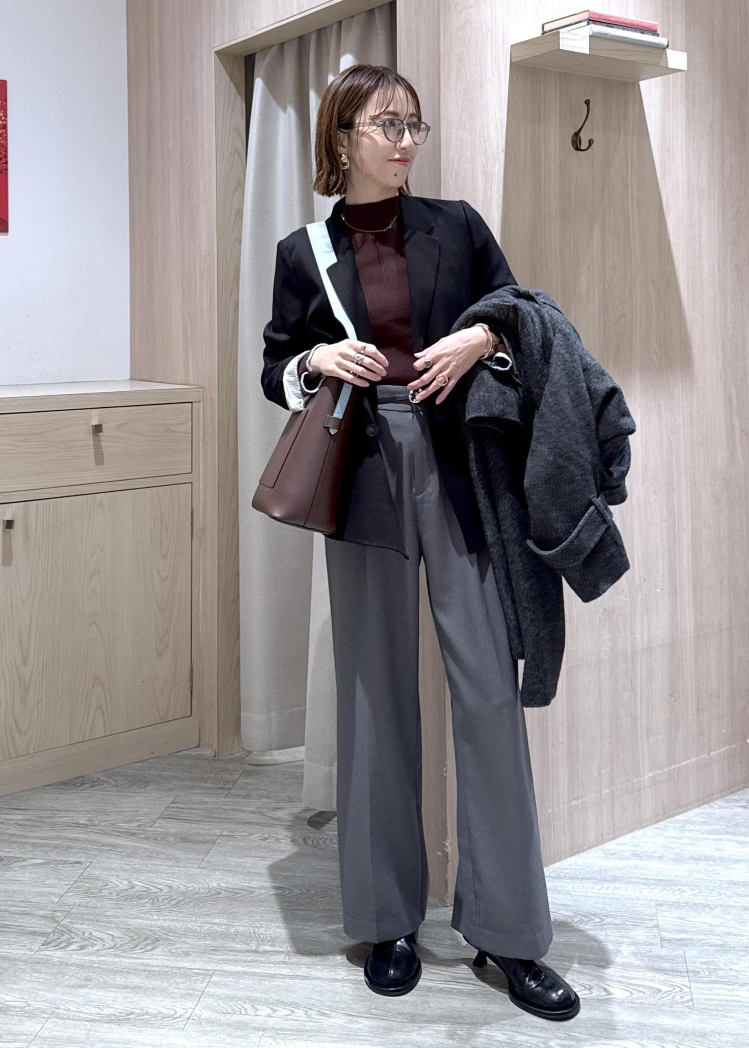 秋らしいレッドカラーがポイントなのでその他はダークトーンでまとめました◎