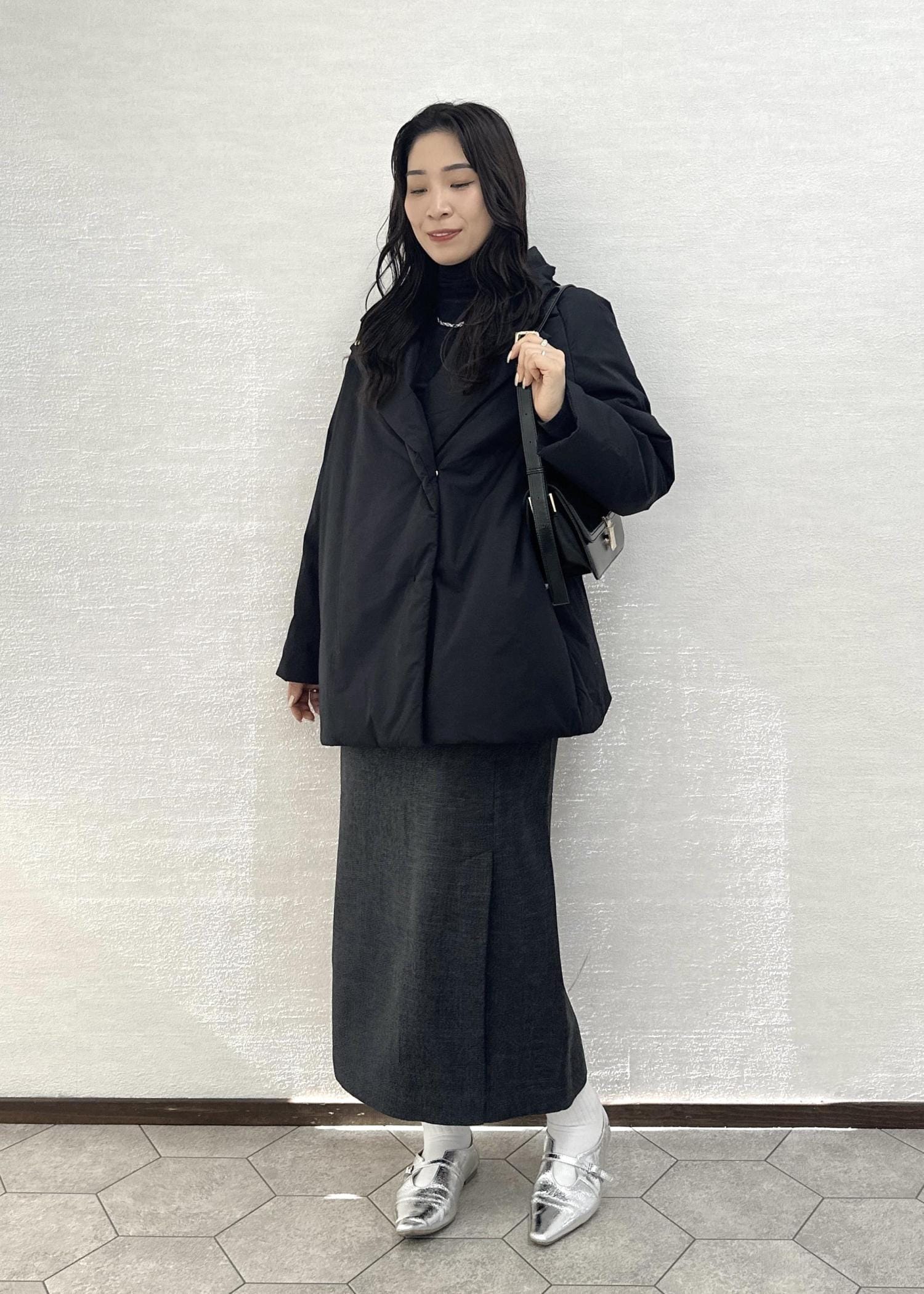 メンズライクなシルエットのジャケットも少しラメが入っていて