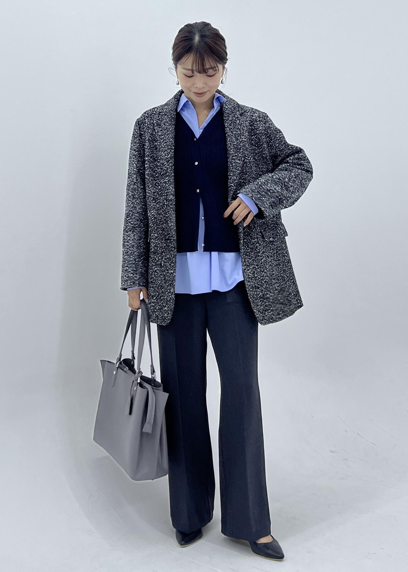 アンチピリングと帯電防止の機能素材で、秋冬にもストレスレスで着やすい生地感です。