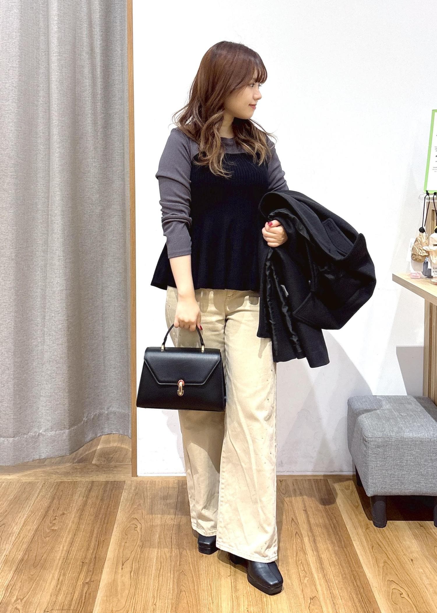 低身長の方が苦手な重ね着をしても、スッキリ着ていただけるコーディネートです!