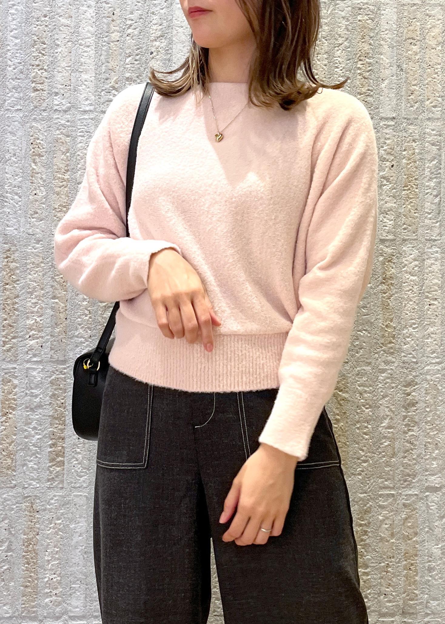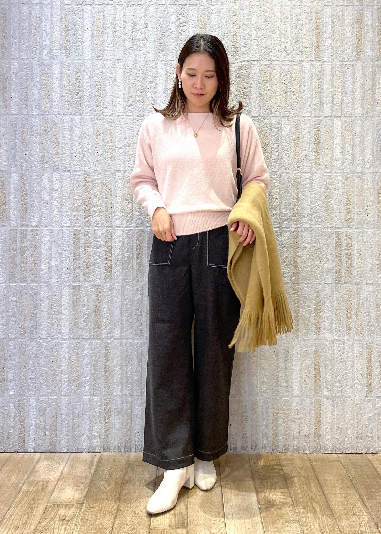 冬でもかわいいパステルカラーのニットを主役に小物はベーシックカラーで合わせてみました。