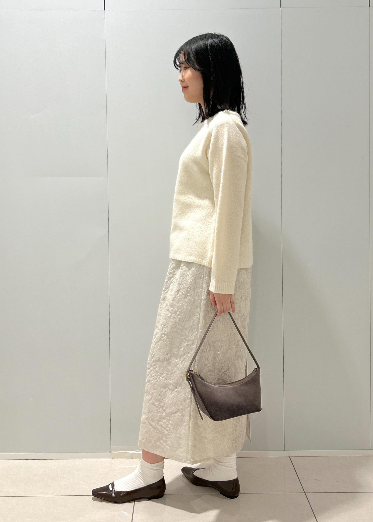 ニットにしては珍しいスッキリとしたシルエットで、コートインしてももたつかず着やすいです。