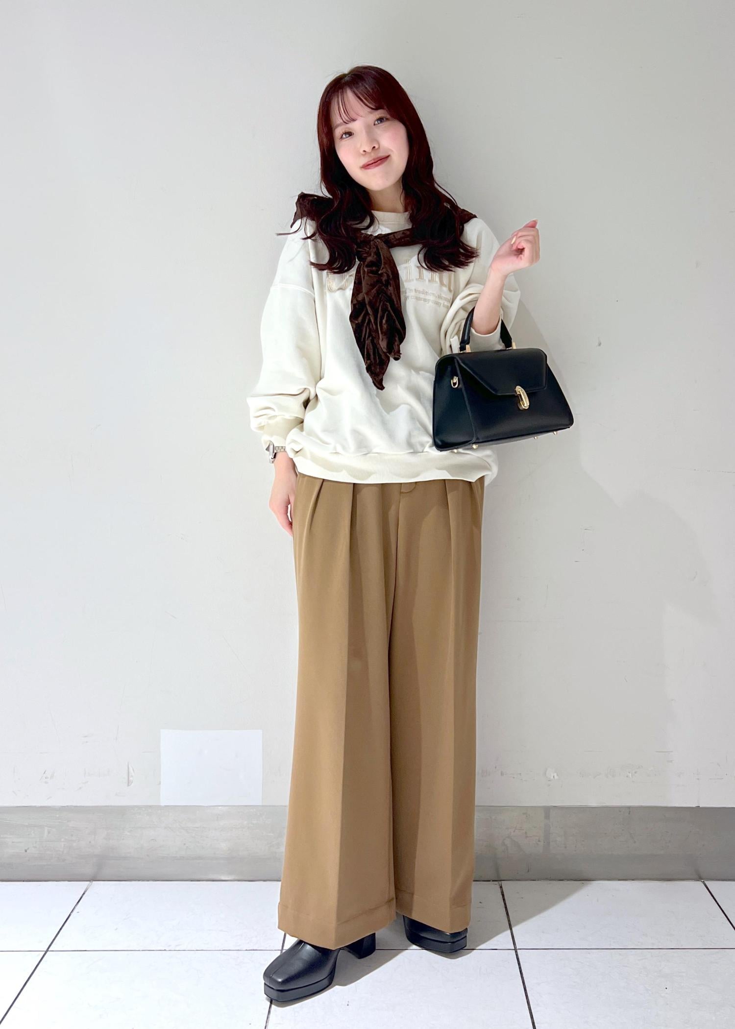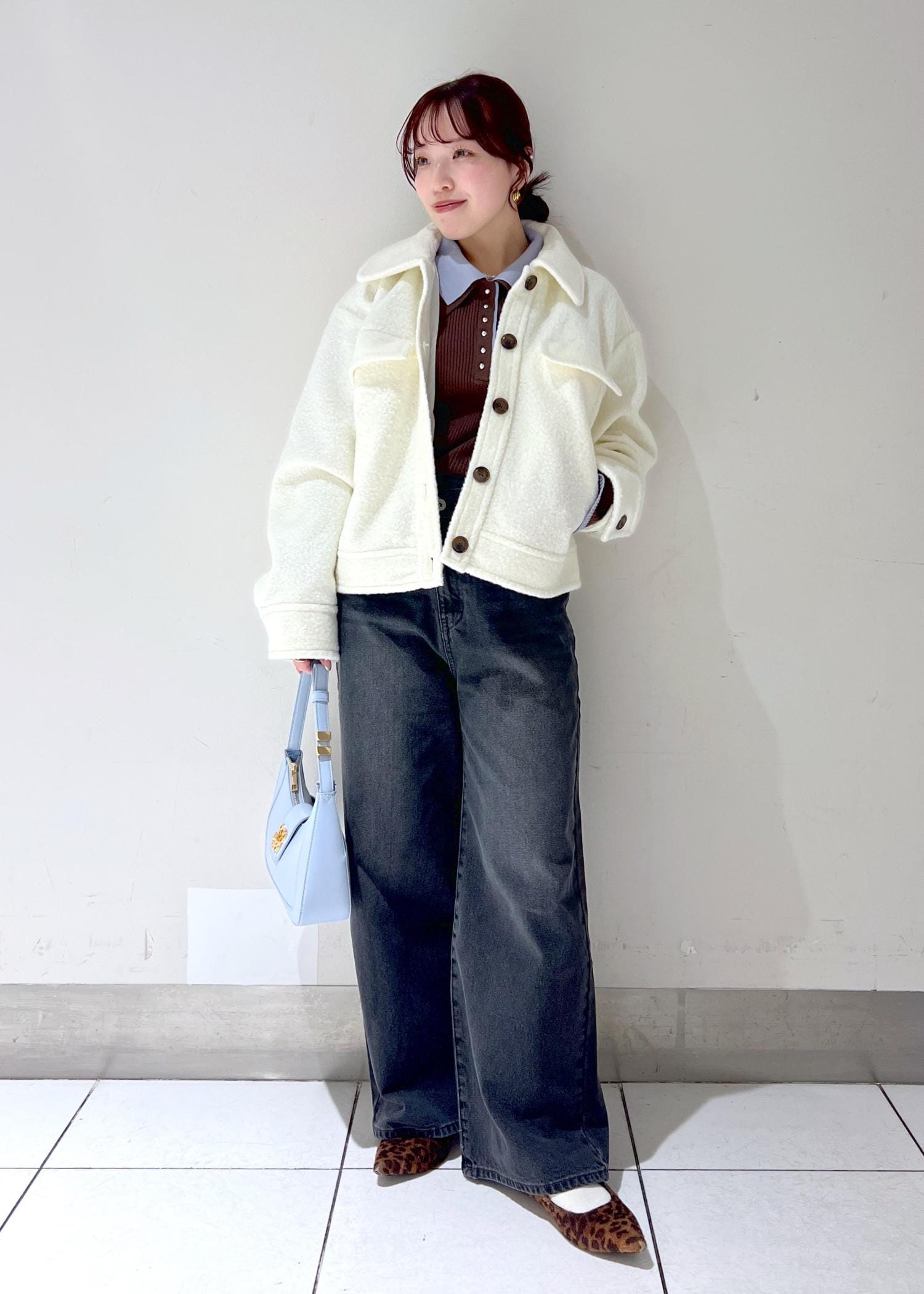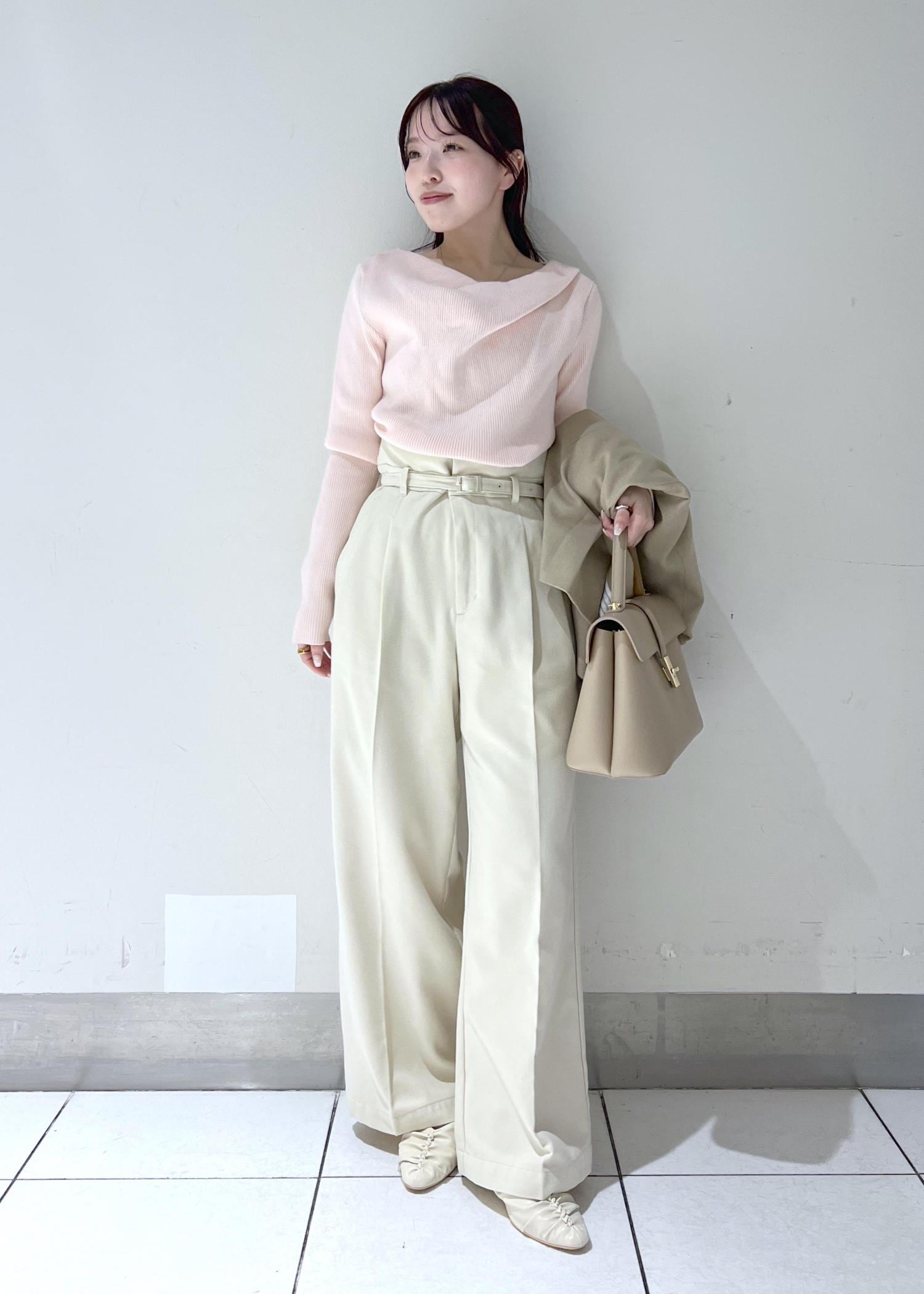 ゆったりとしたフォルムが女っぽく、全体的にゆとりもあるので中にシャツなど重ね着もできます!