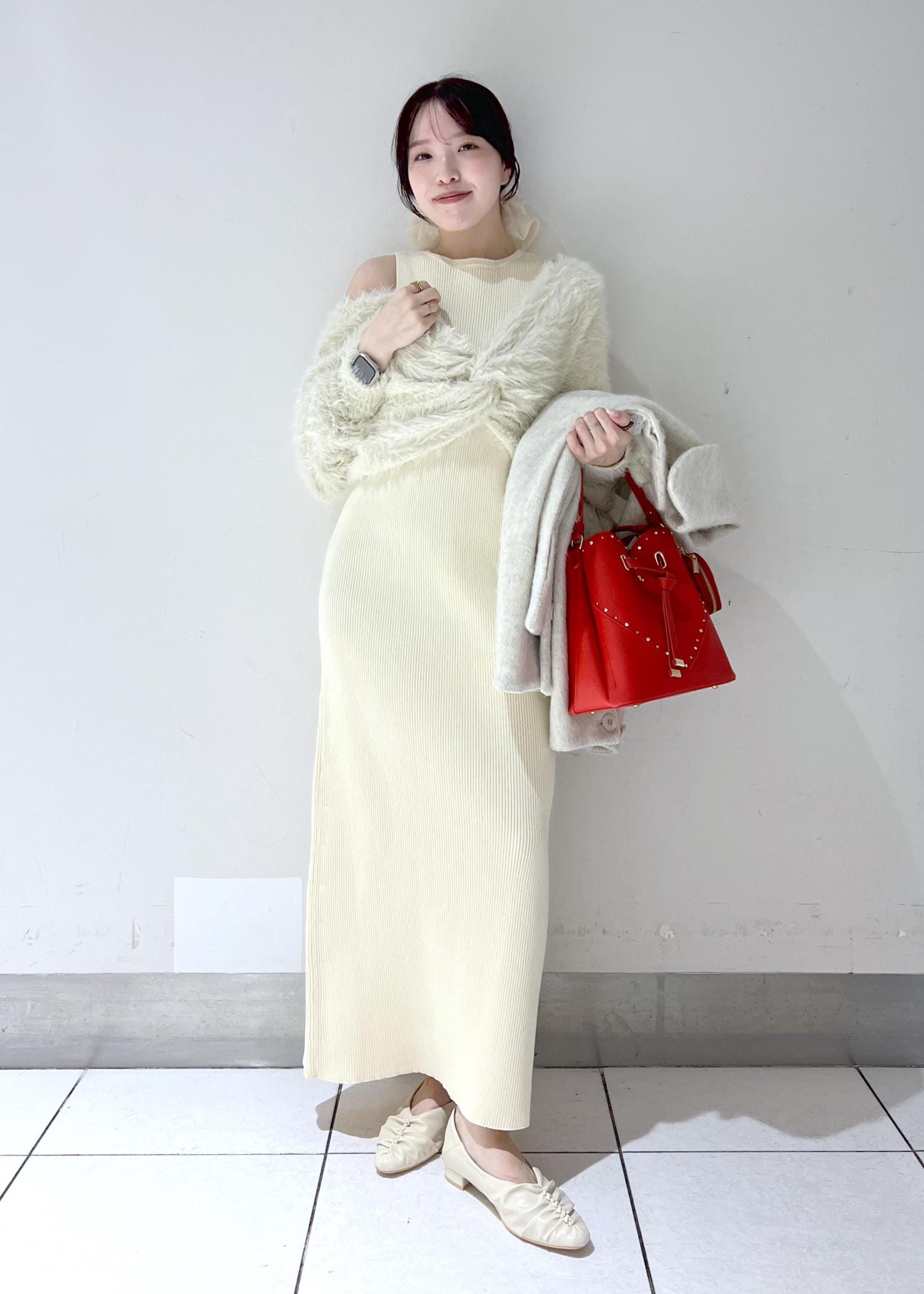 リアルバイのカラーニットとスカートを合わせてベーシックなお出かけスタイルに☺︎