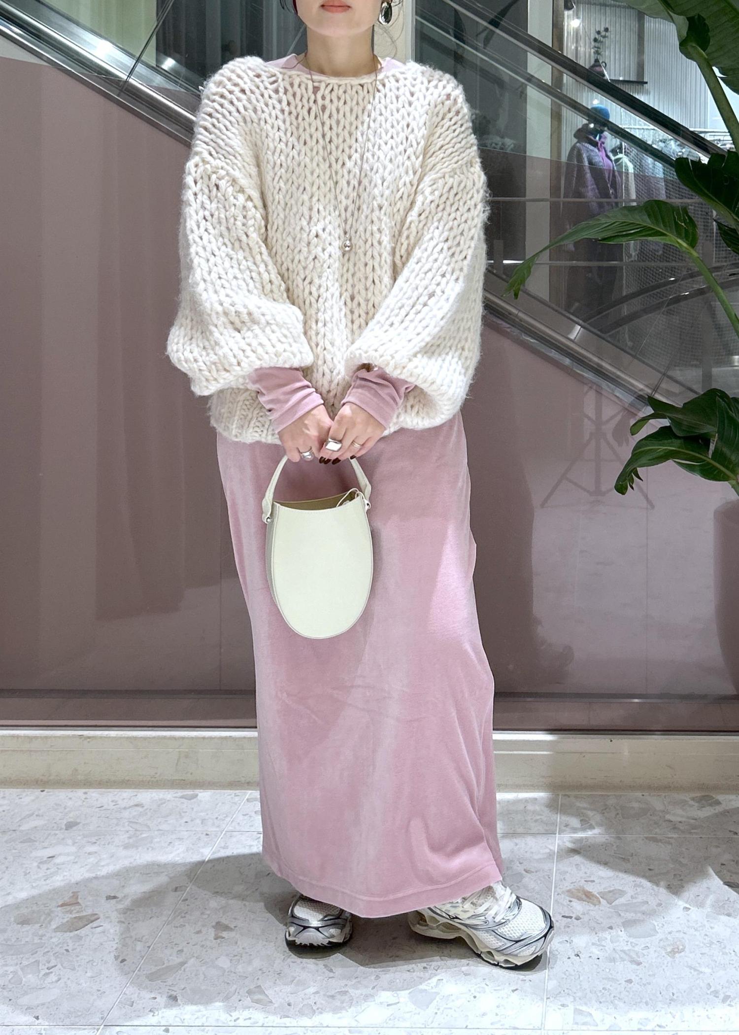 くるくるのループファーが可愛いコートはサッと羽織るだけでスタイリングの主役になります。