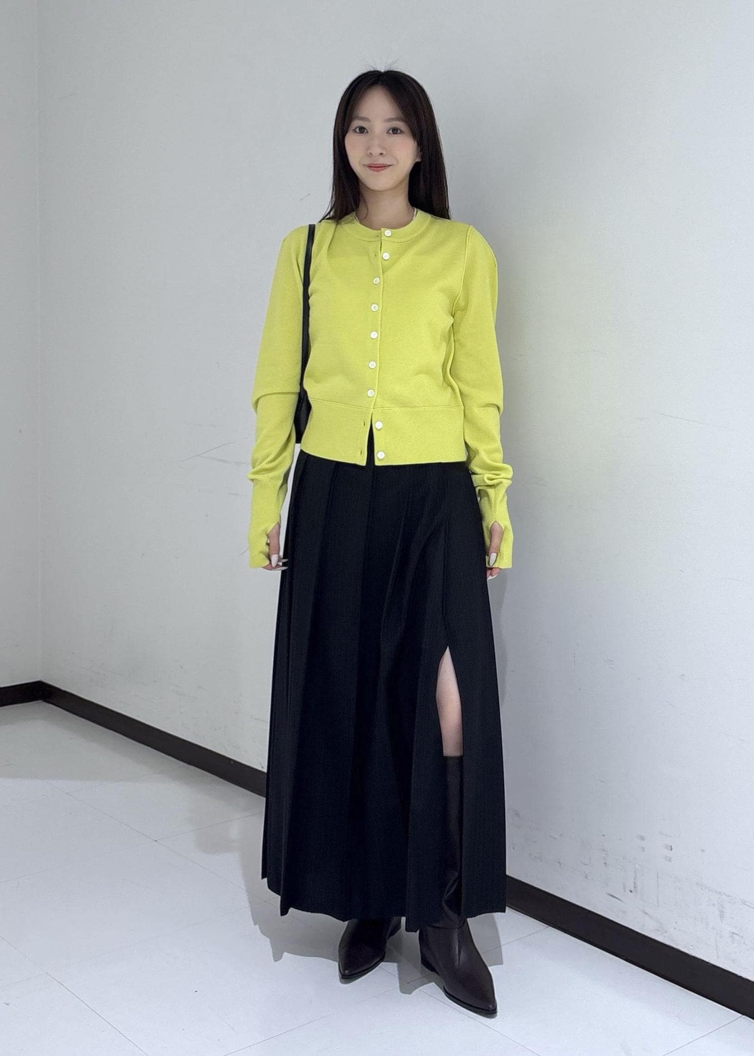 丈が短めなのでパンツスタイル、スカートスタイルどちらもおしゃれにバランスよく合わせていただけます。