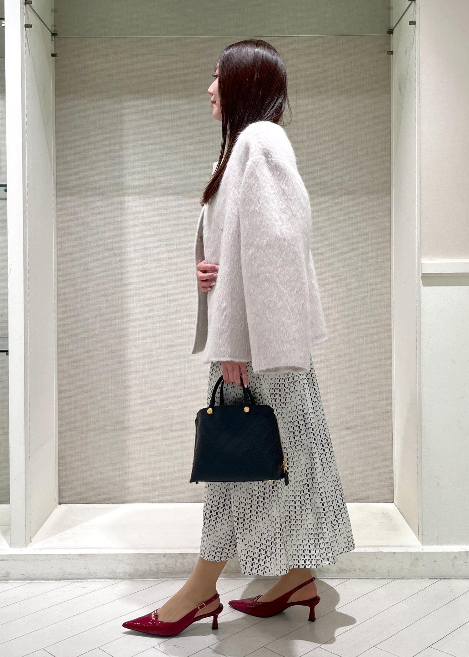程よいツヤ感が着用しやすく、シワになりにくい素材感なので、お呼ばれやパーティーシーンにもおすすめです♪