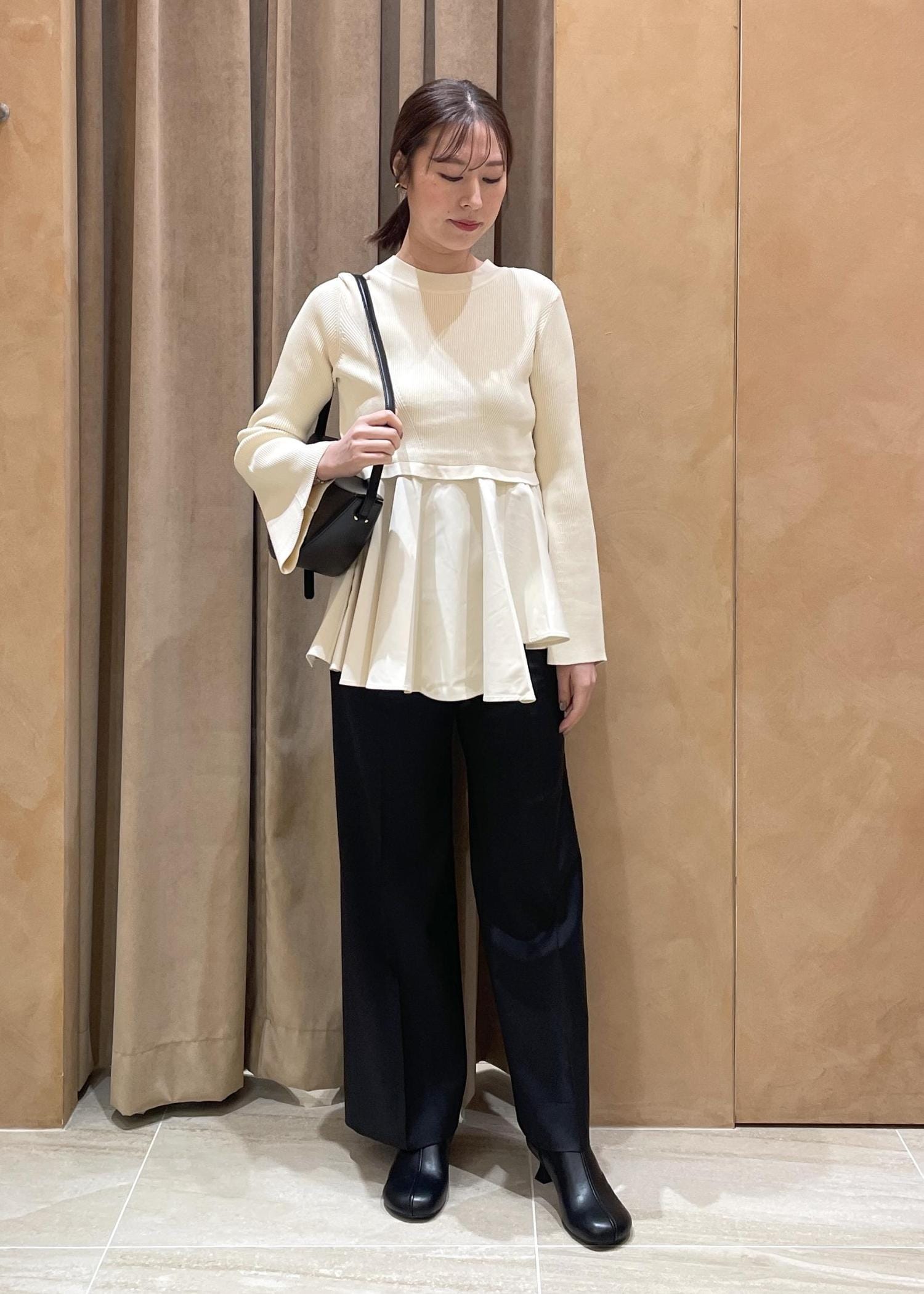 また、オーバーシルエットとフォルムスリーブがモード感を引き立たせてくれる所も◎