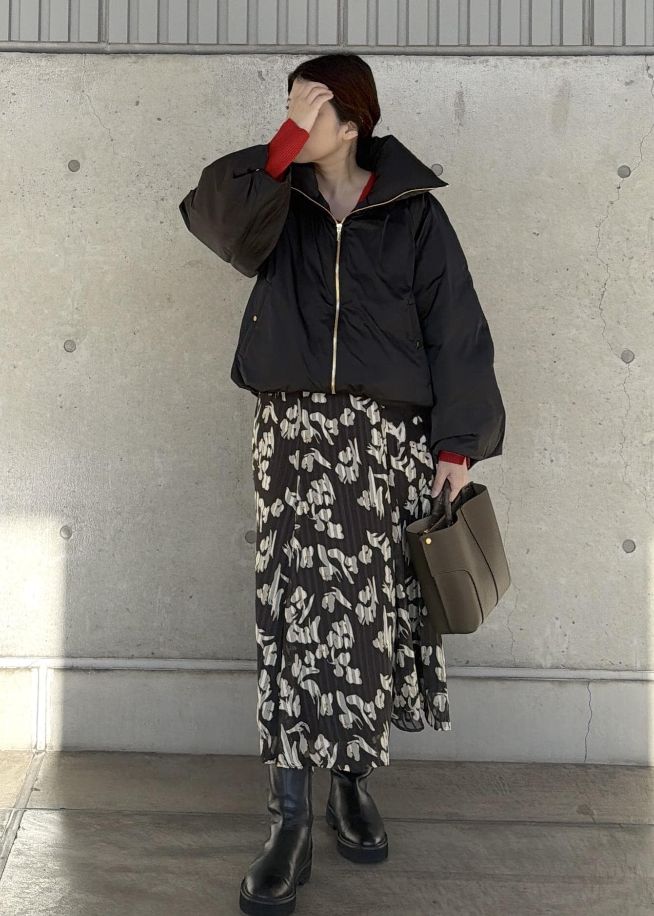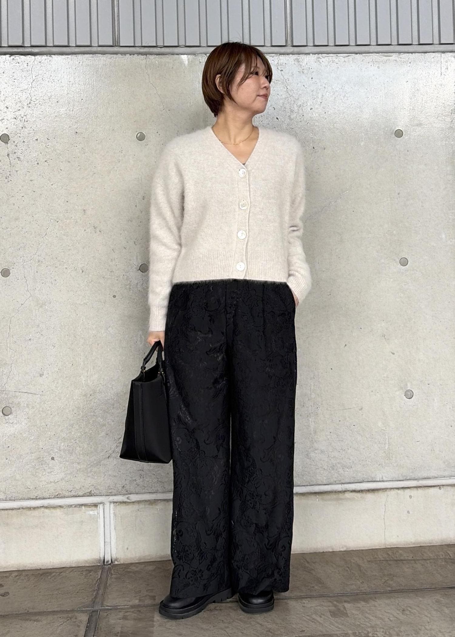 高めのウエストからややAラインに広がる女性らしいデザイン。