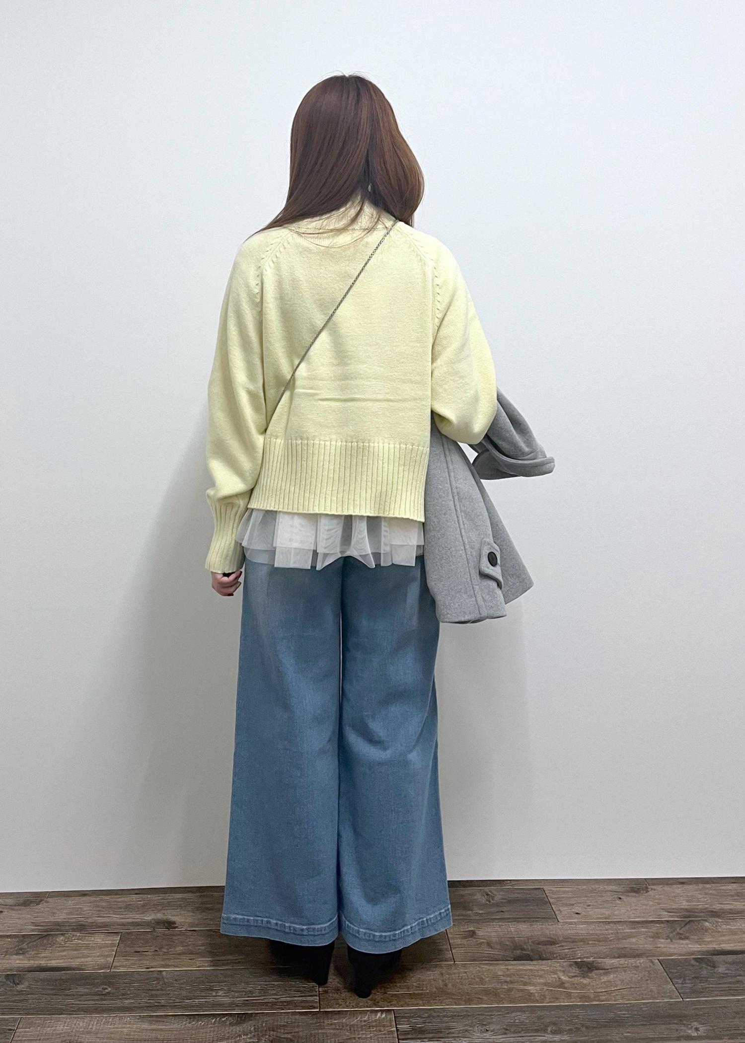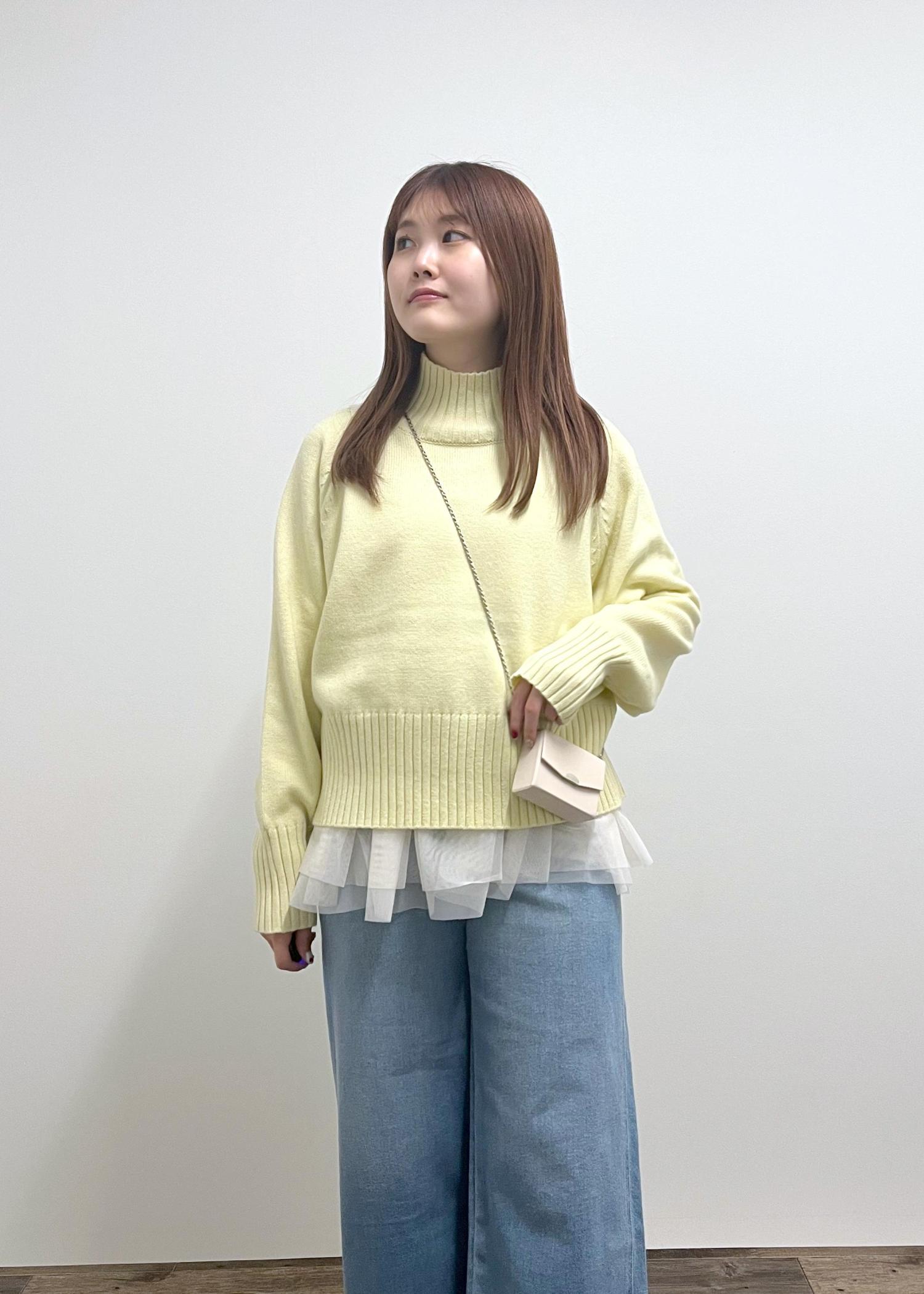 短めのトップスやシンプルなトップスにレイヤードしてあげると簡単にオシャレになります✧︎